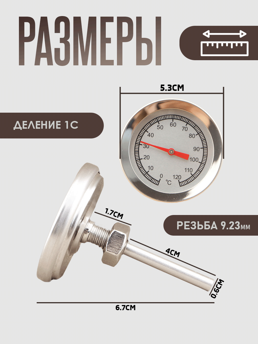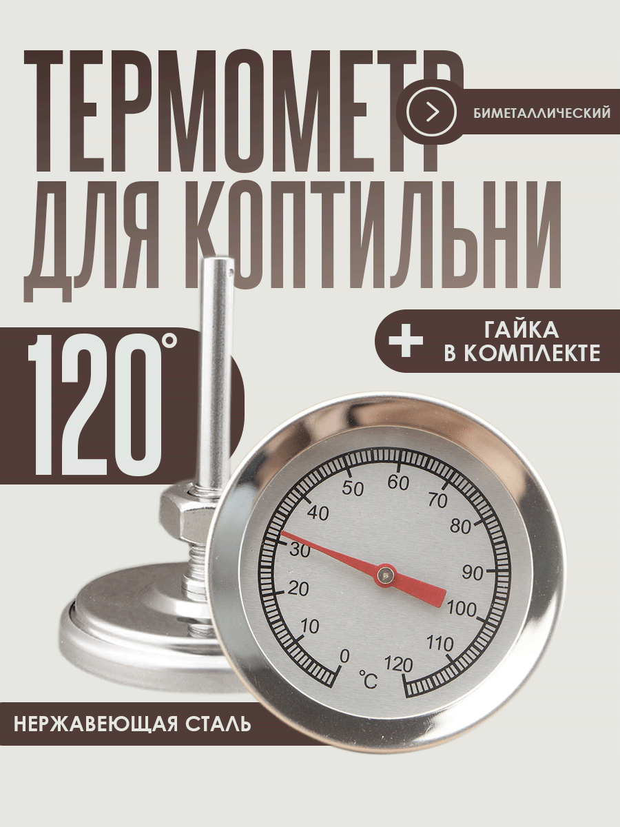 Биметаллический термометр для коптильни горячего копчения, цвет - серебристый интересное: