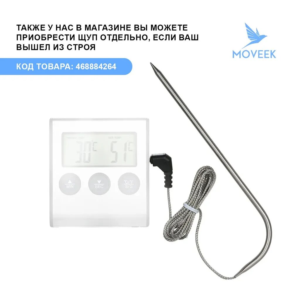 Купить Термометр кухонный цифровой с таймером и щупом. Кулинарный термометр для дома с проводом 1 метр.
