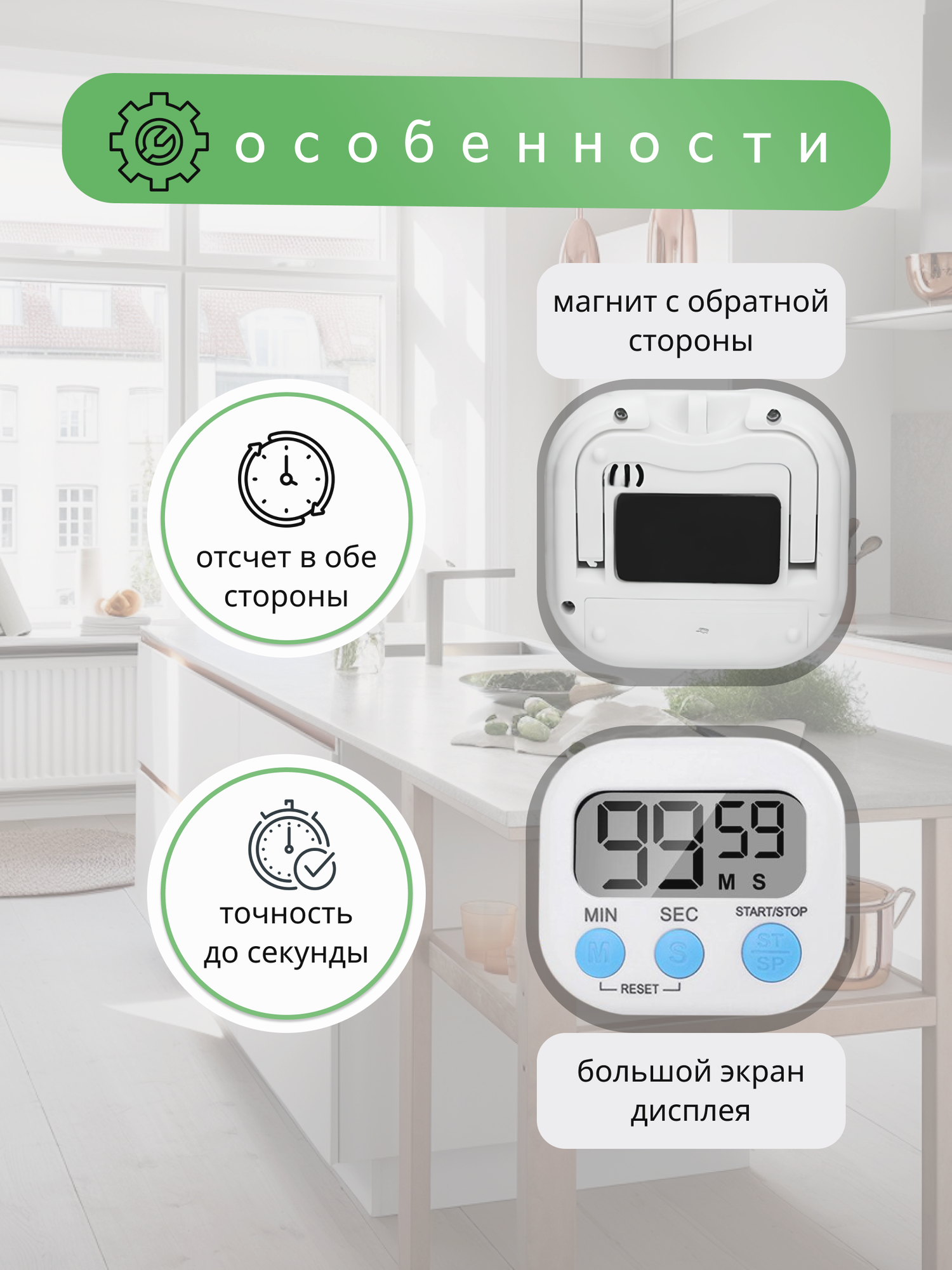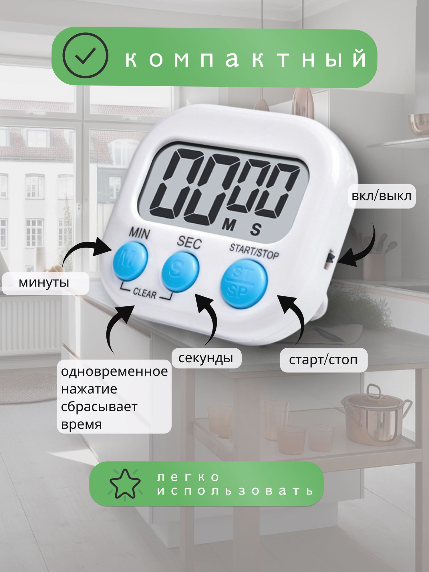 Таймер кухонный электронный с магнитом на холодильник, цвет: белый интересное: