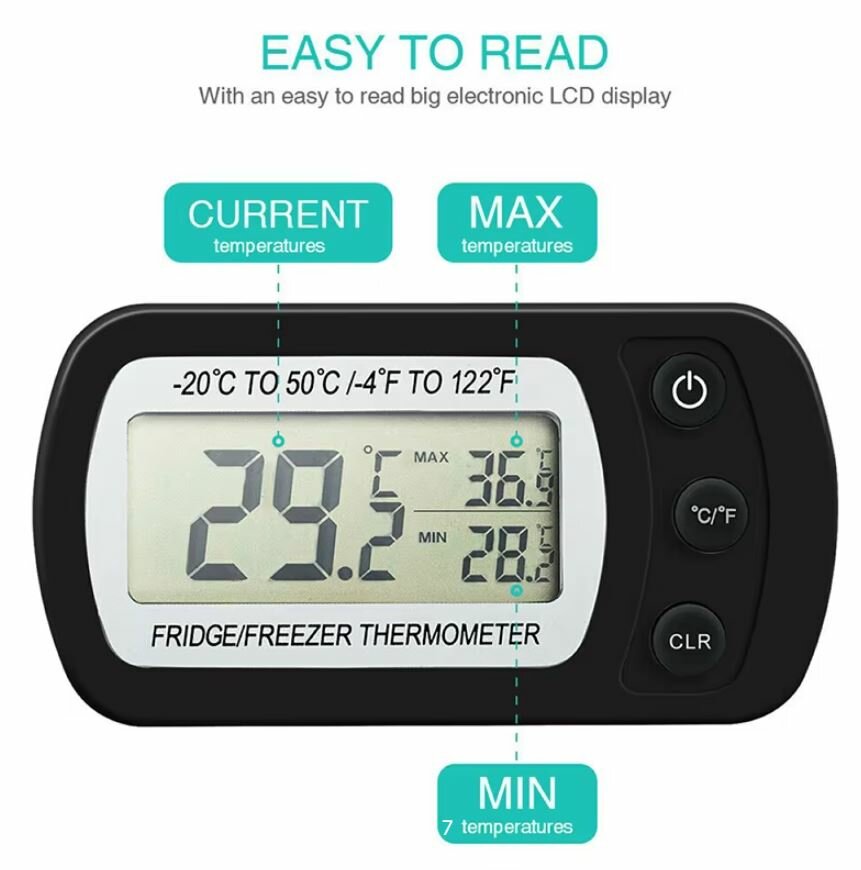 Ниже Вы можете прочитать отзывы на Термометр с крючком для холодильника и морозилки, Электронный цифровой кухонный прибор для измерения температуры, белый, ознакомится с подробными характеристиками, посмотреть интересные обзоры и фотографии на Термометр с крючком для холодильника и морозилки, Электронный цифровой кухонный прибор для измерения температуры, белый.