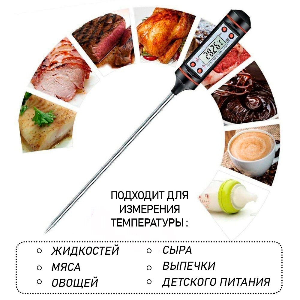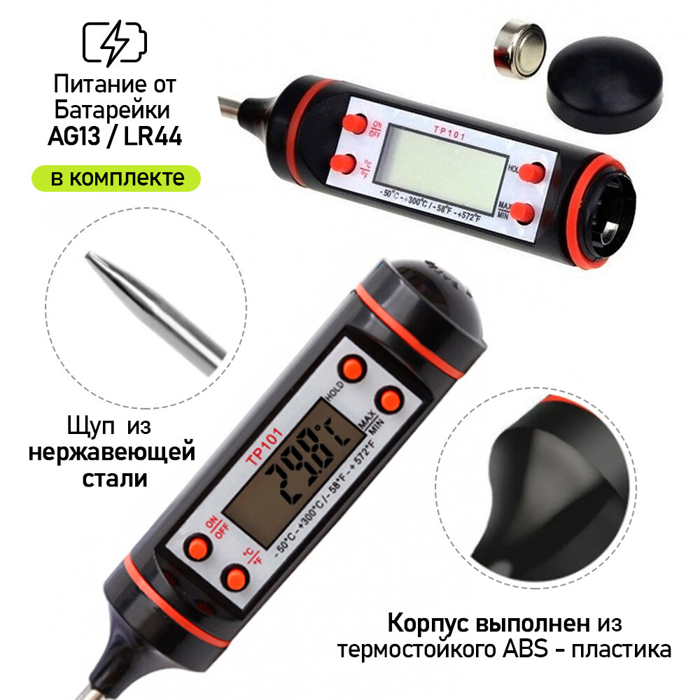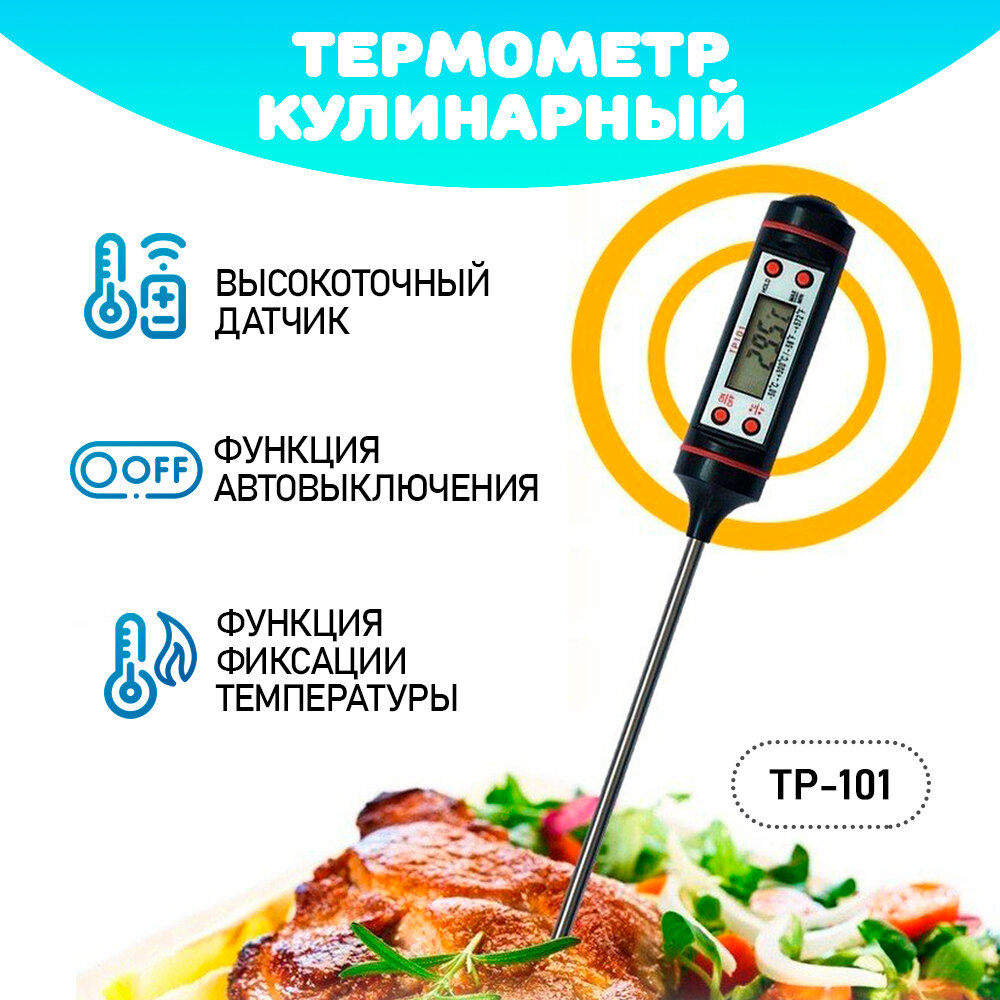 Термометр электронный TP-101 кулинарный термощуп для мясо и гриля, цвет - черный интересное: