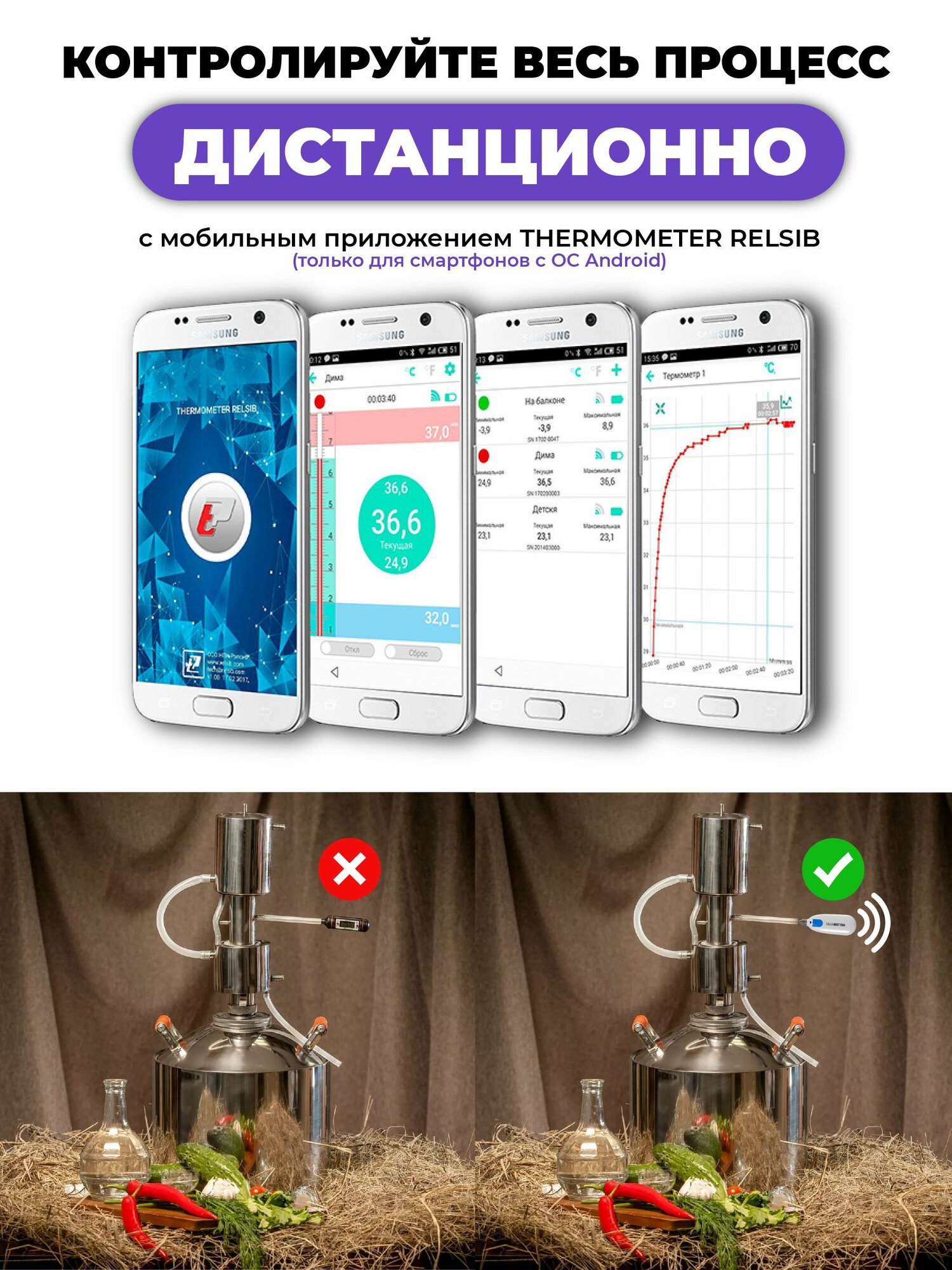 Купить Термощуп универсальный, с Bluetooth, для Android, Рэлсиб