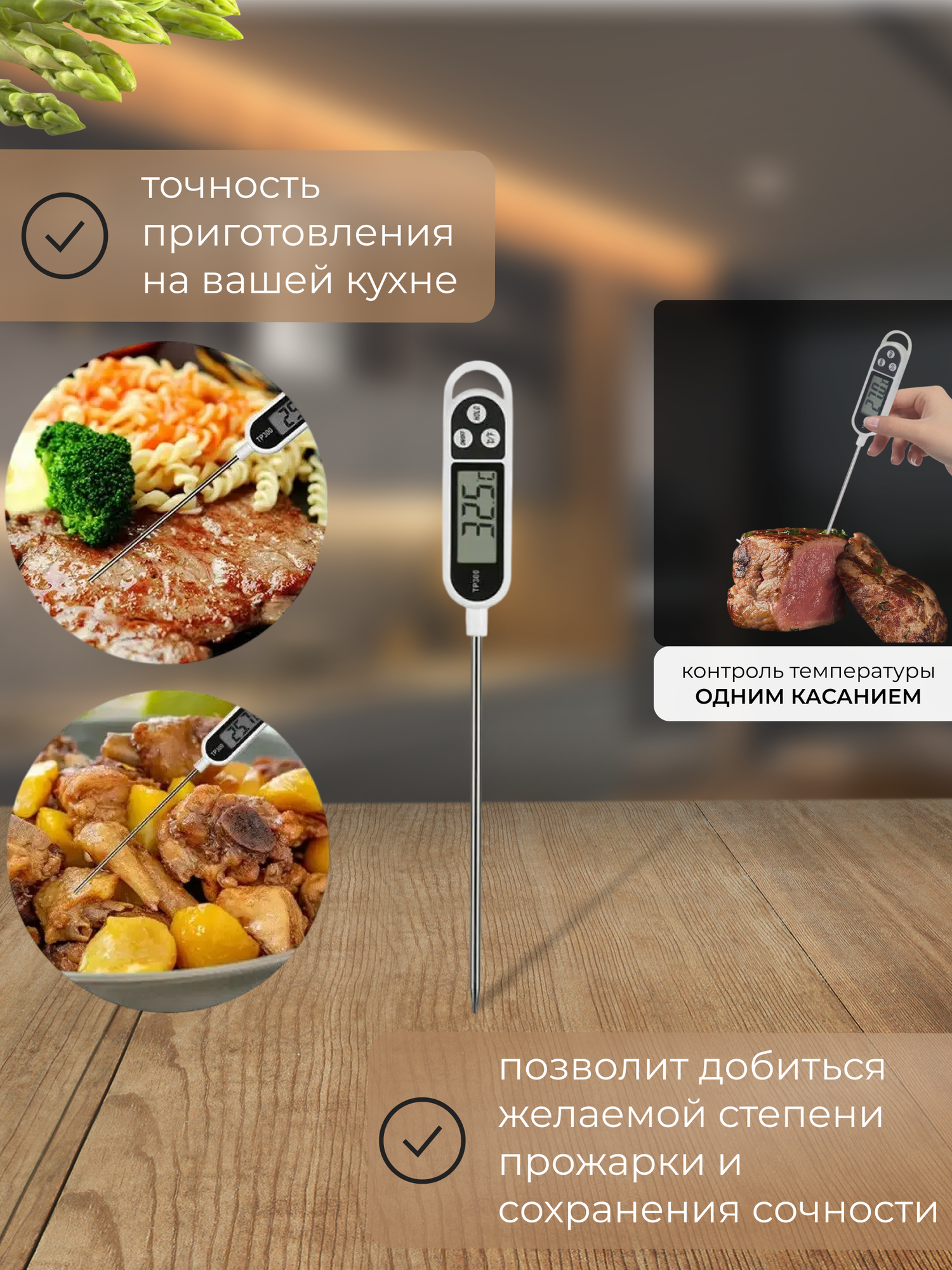 Термометр кулинарный электронный с щупом / термощуп для приготовления пищи / градусник , белый