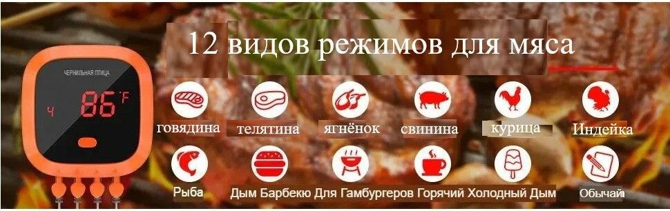 Кулинарный термометр термощуп INKBIRD, 4 щупа, IBT-24SPH, WI-FI, Bluetooth