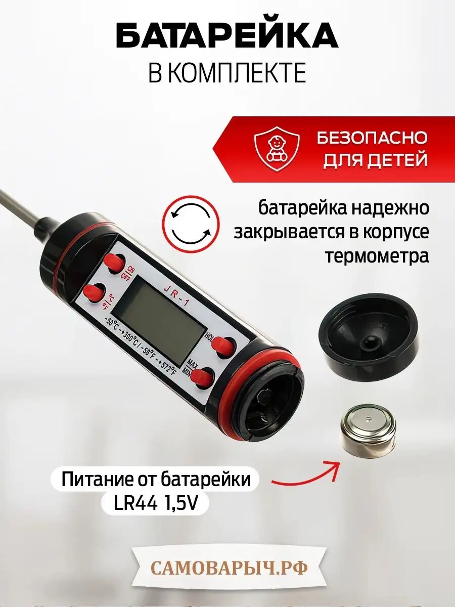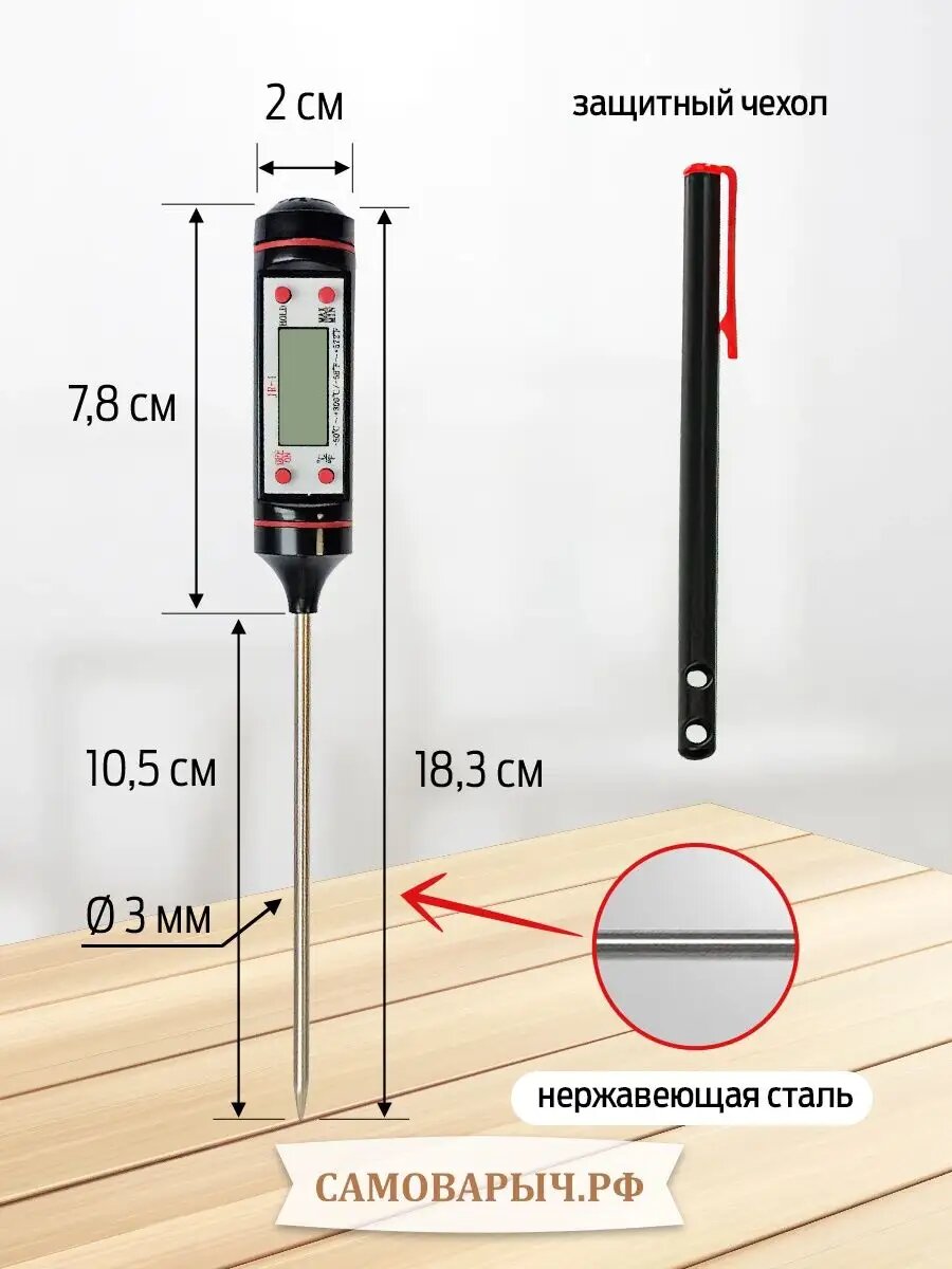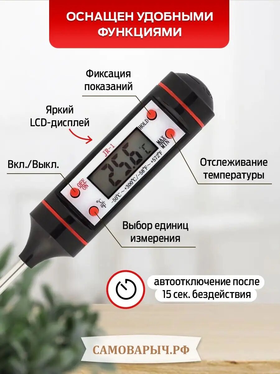 Термометр кулинарный САМОВАРЫЧ JR-1, от -50°C до 300°C, со щупом интересное: