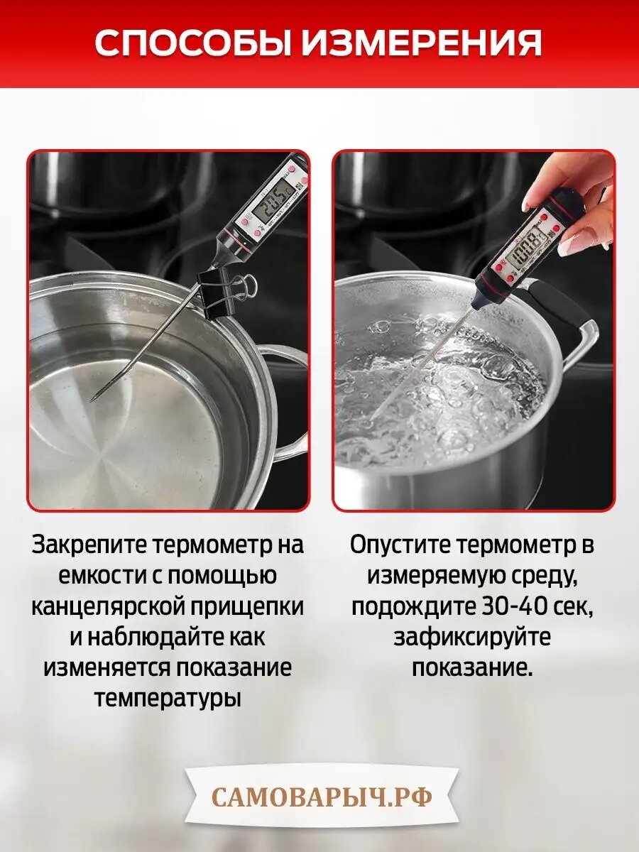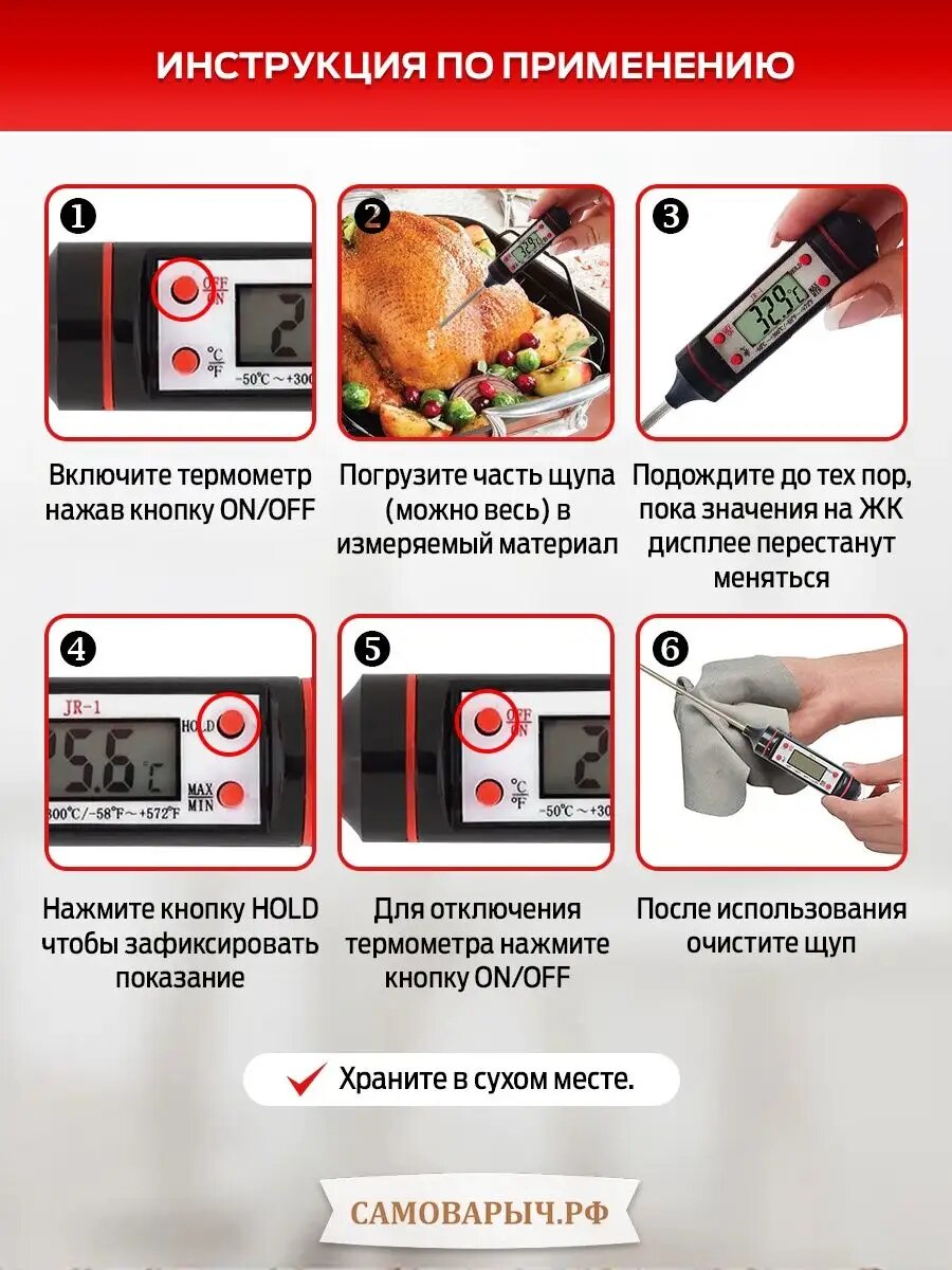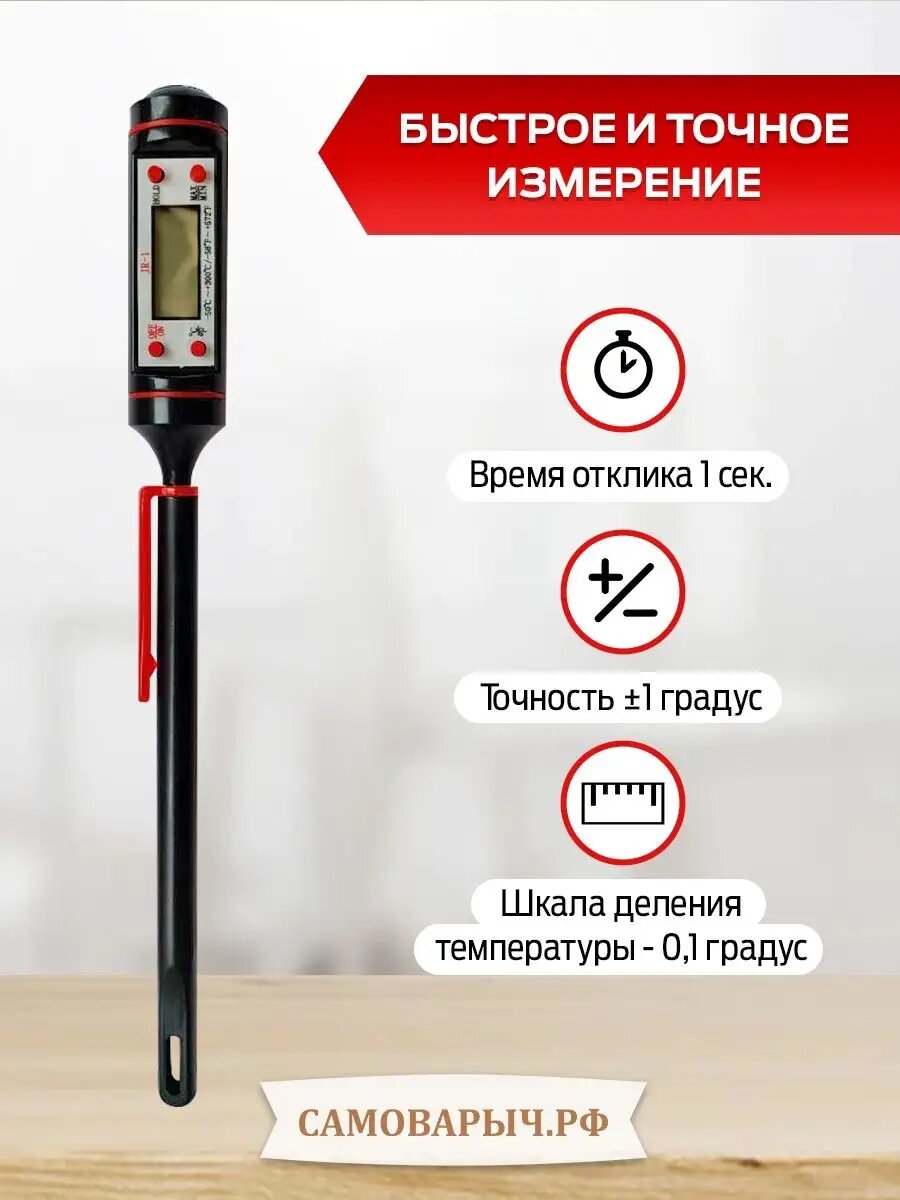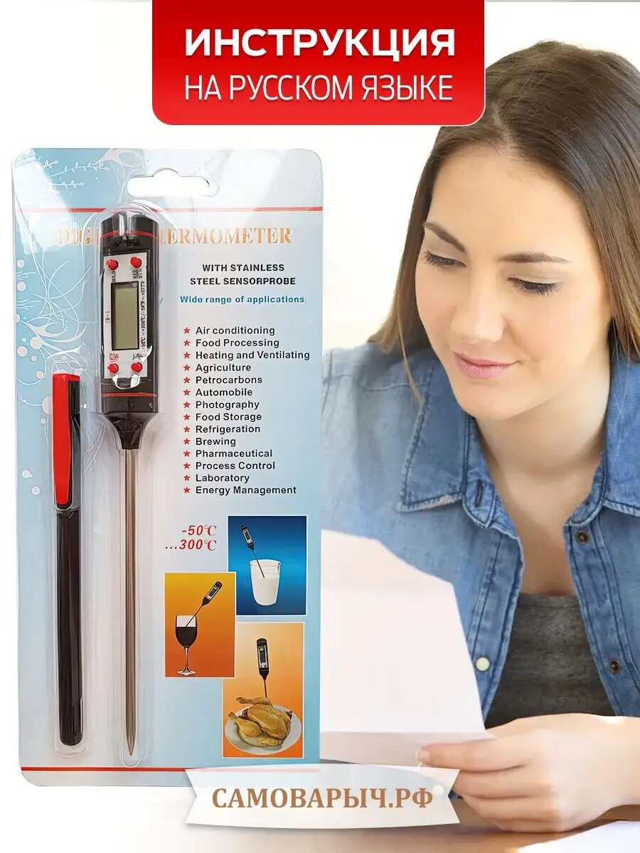 Термометр кулинарный САМОВАРЫЧ JR-1, от -50°C до 300°C, со щупом интересное: