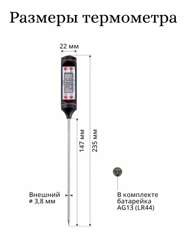 Термощуп TP-101 для кухни, Термометр кулинарный цифровой с щупом TP-101, чёрный, термощуп кухонный интересное: