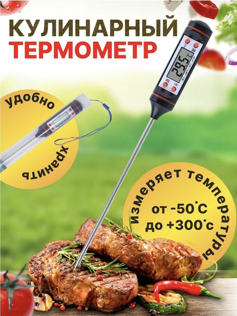 2 (два) Термощупа TP-101 для кухни, Термометр кулинарный цифровой с щупом TP-101, чёрный, термощуп кухонный интересное: