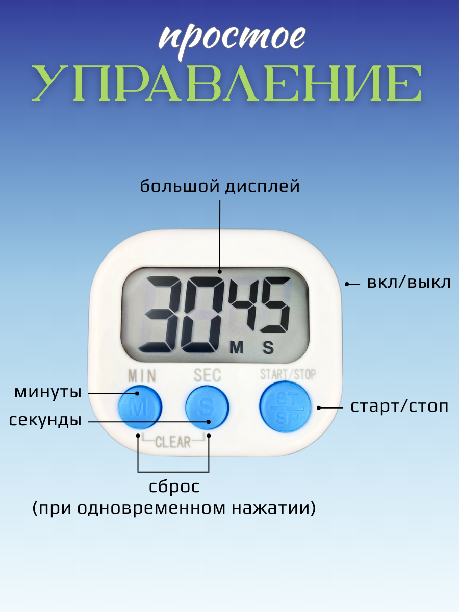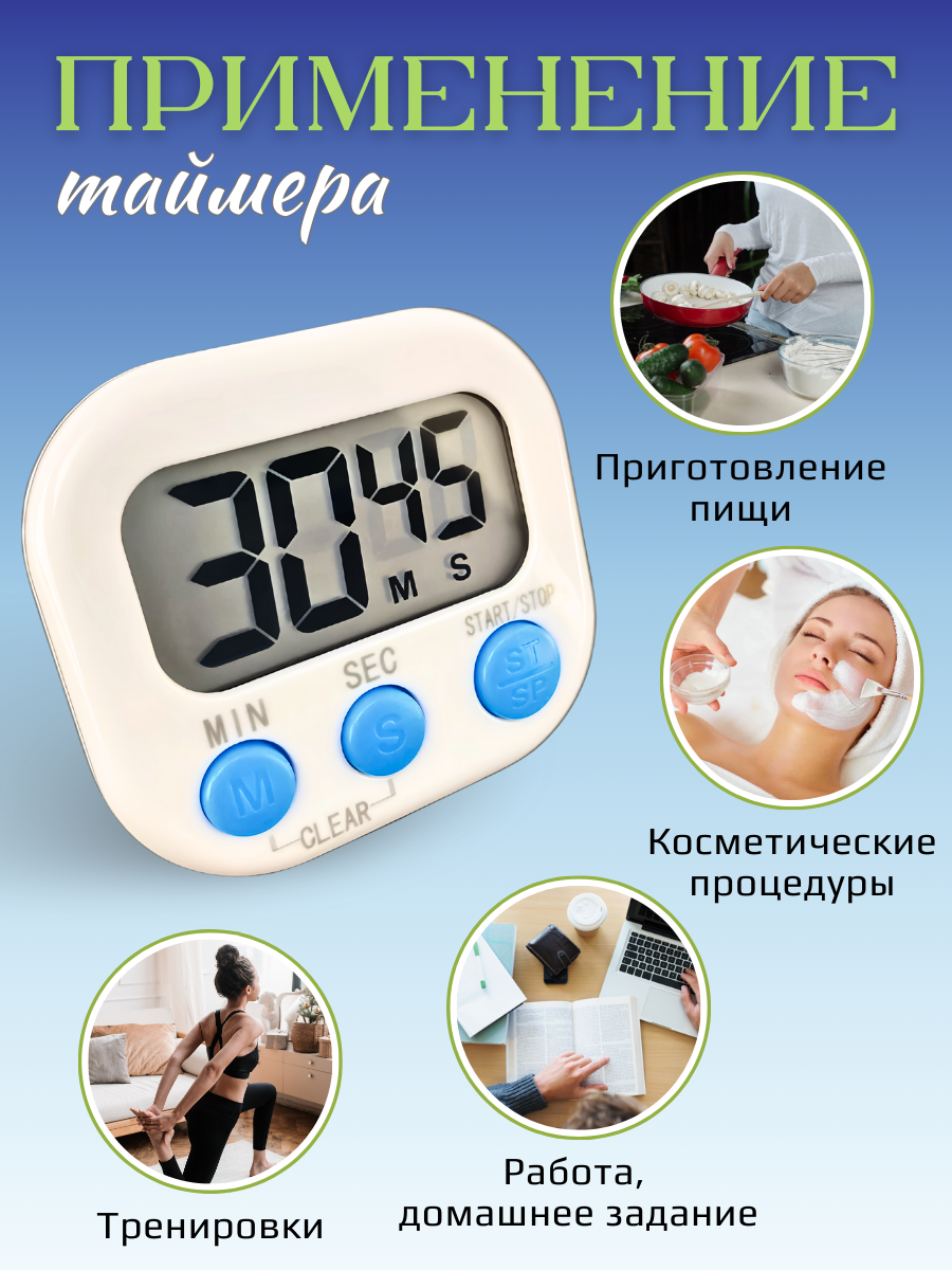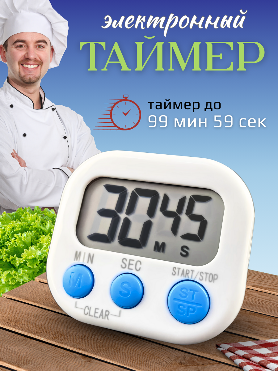 Таймер кухонный электронный, таймер кулинарный магнитный CGPro, цвет белый интересное:
