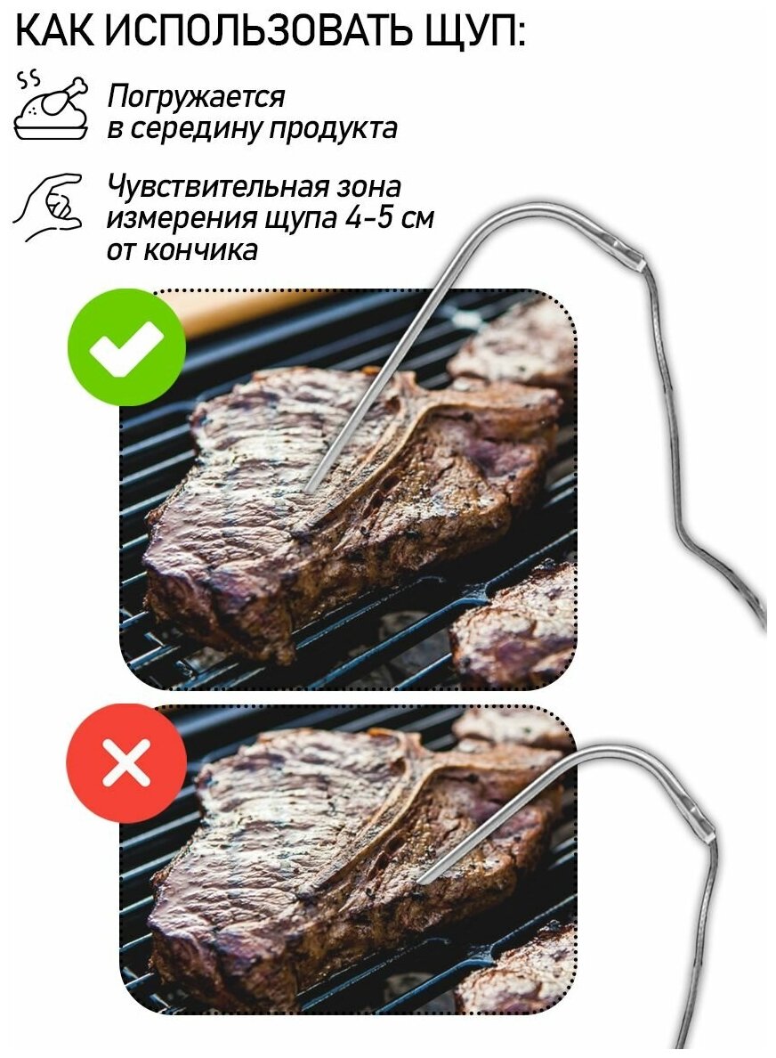 Щуп кулинарный, термодатчик для гриля, зонд, набор щупов кулинарных 2 штуки интересное:
