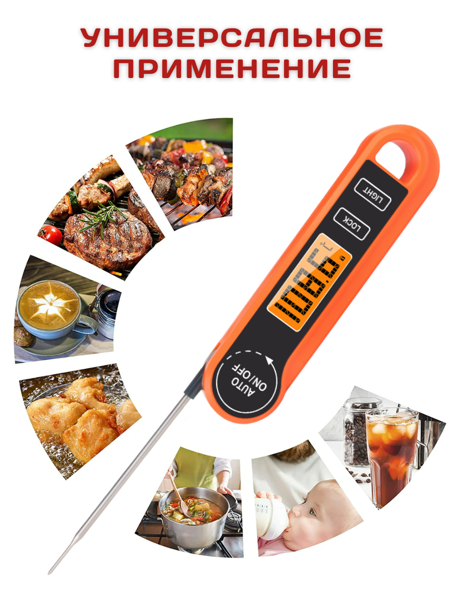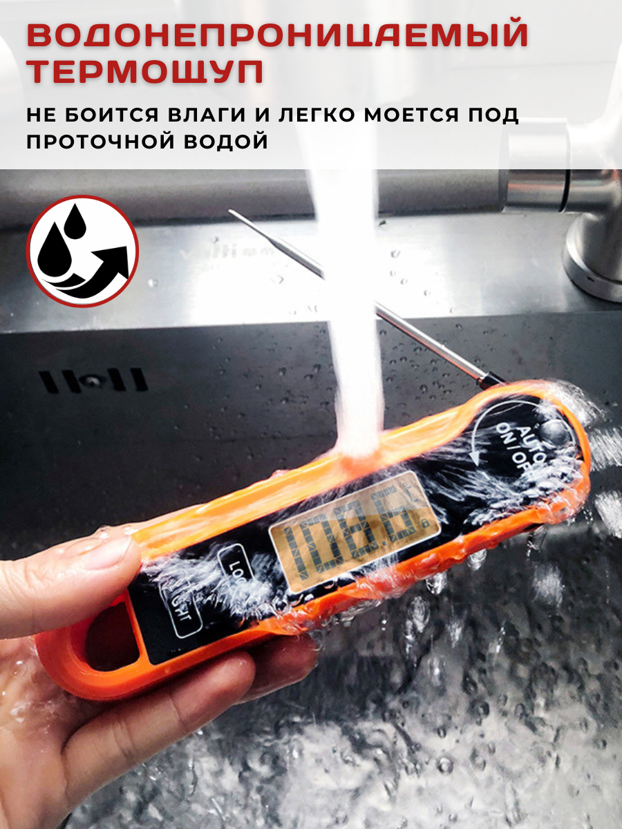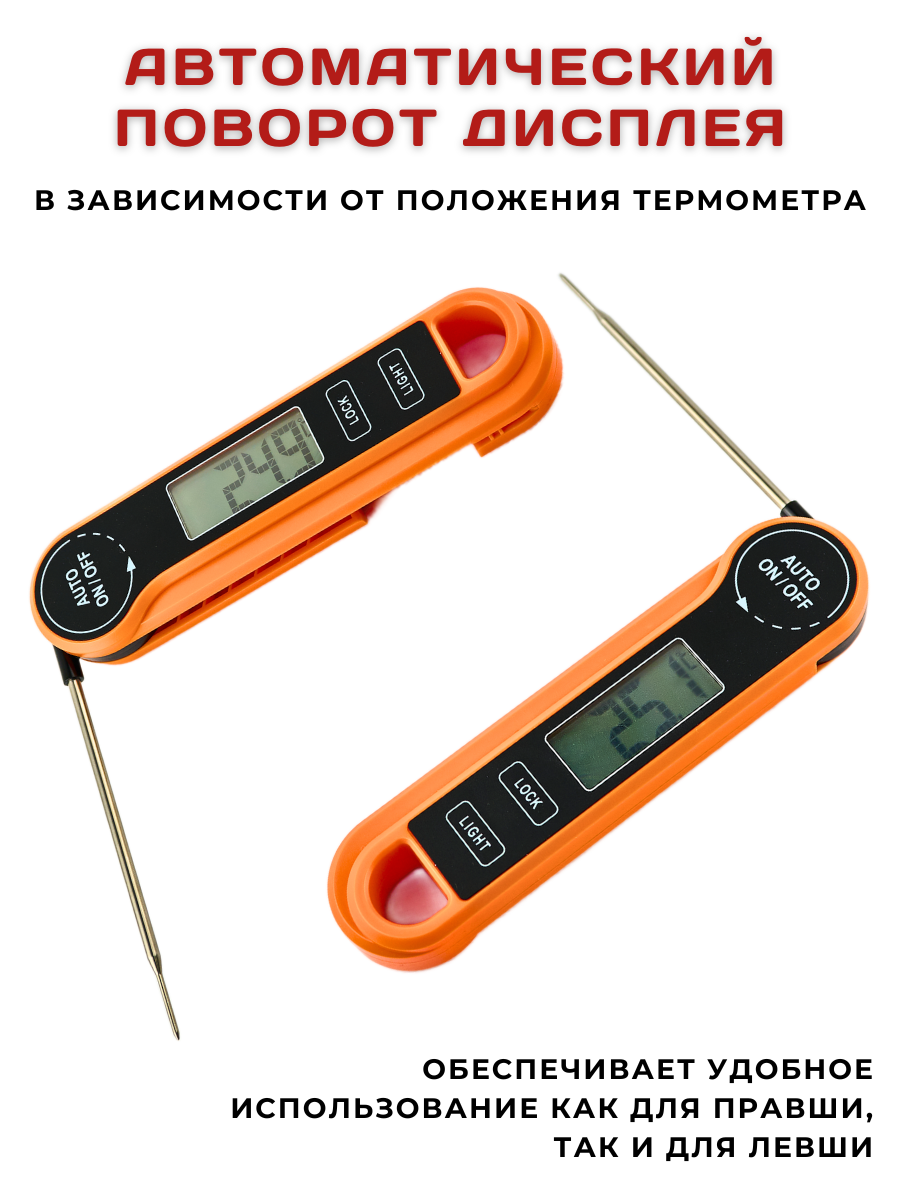 Термометр кулинарный с щупом водонепроницаемый с реверсивным чтением, t от -50 до +300С, щуп 10.6 см, термометр кулинарный складной, щуп кухонный интересное: