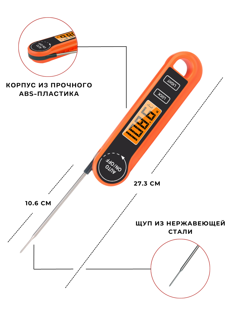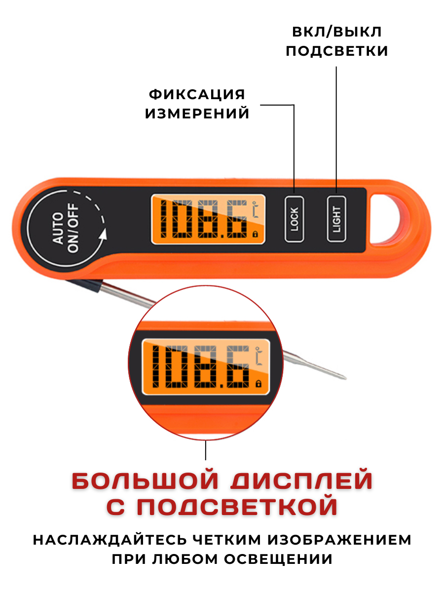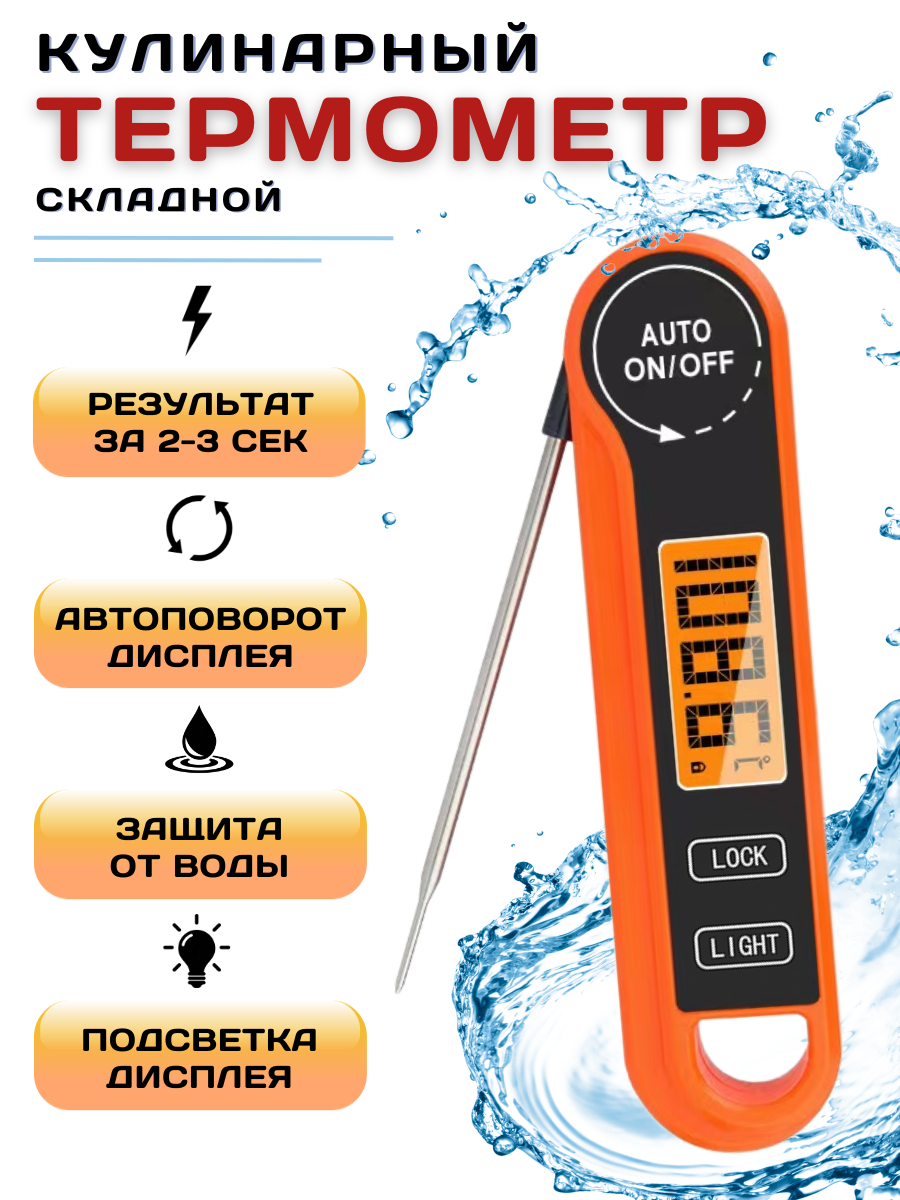 Термометр кулинарный с щупом водонепроницаемый с реверсивным чтением, t от -50 до +300С, щуп 10.6 см, термометр кулинарный складной, щуп кухонный интересное: