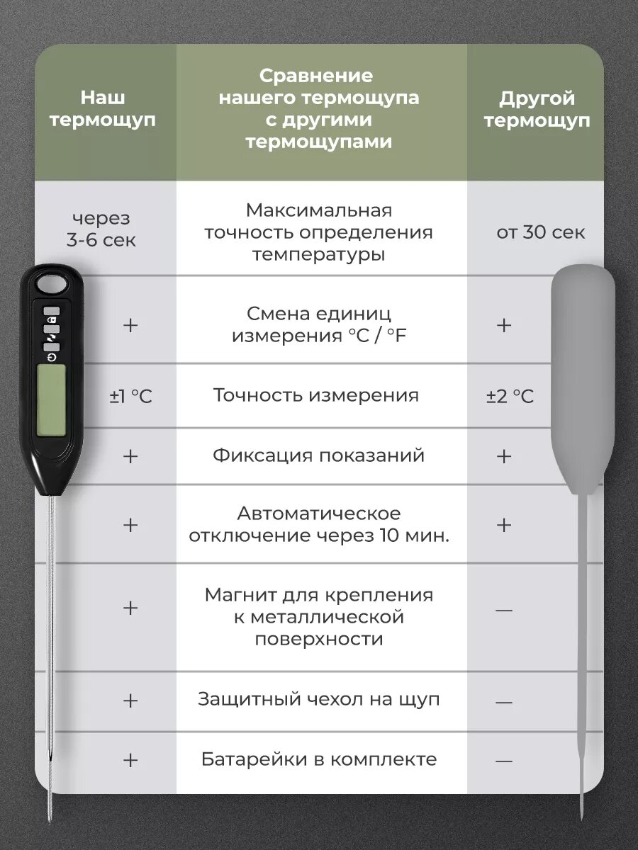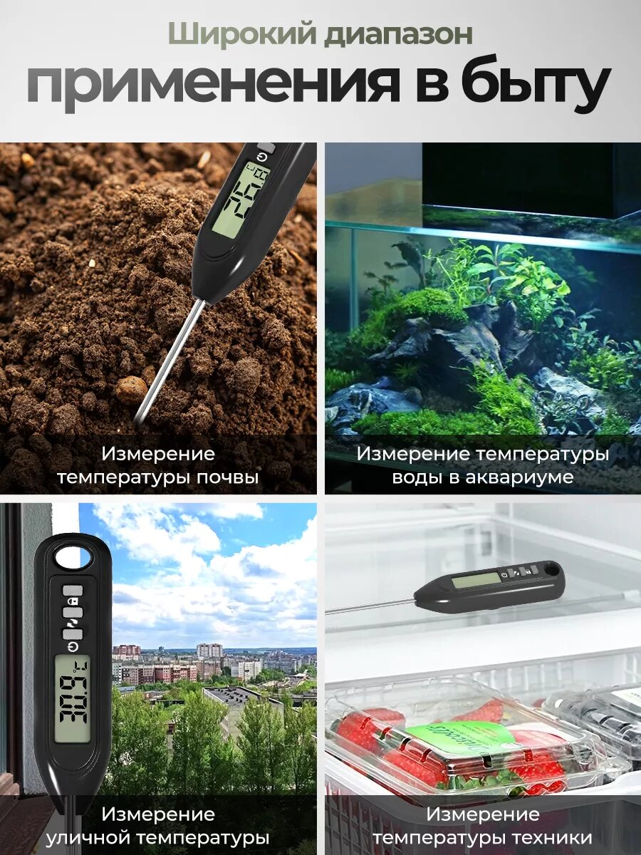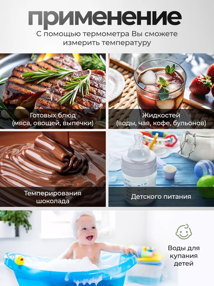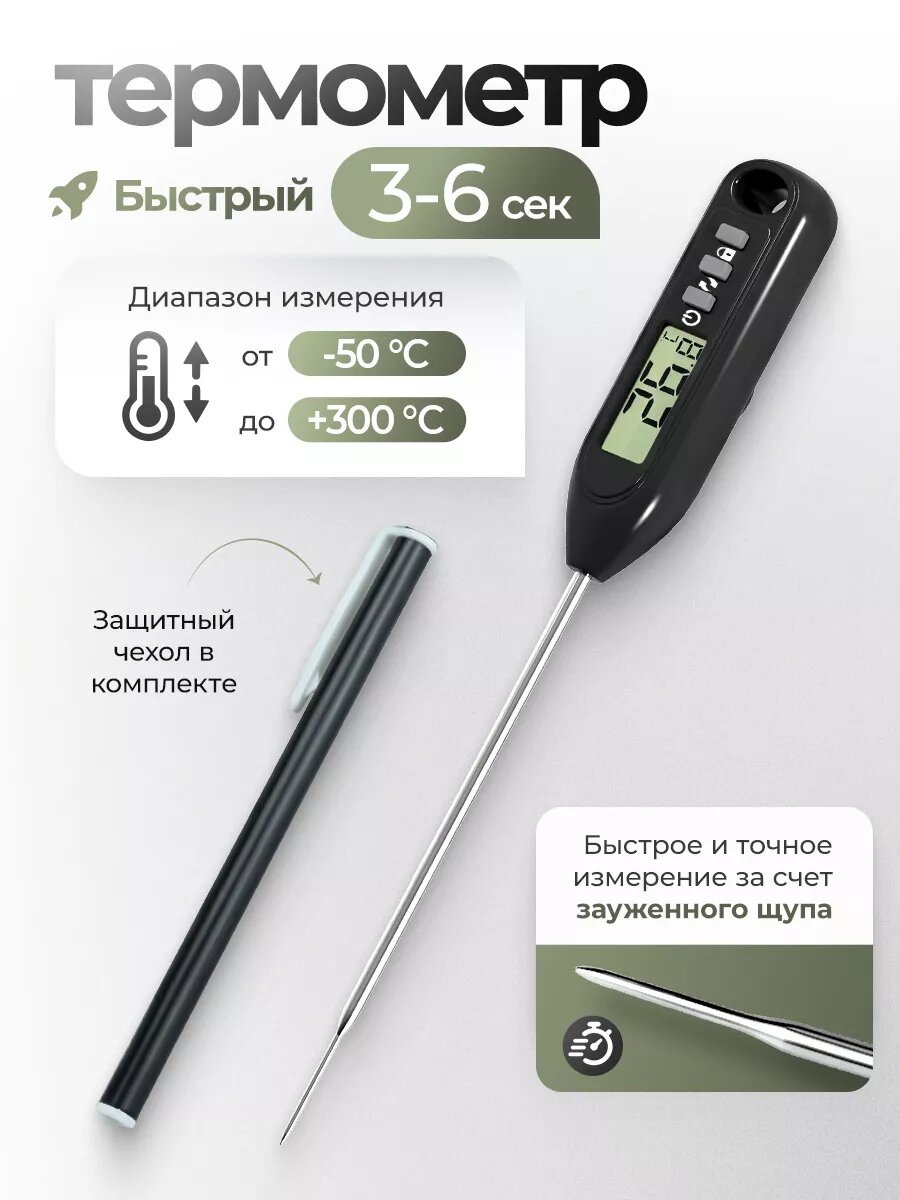 Кулинарный термометр электронный со щупом из нержавеющей стали, термометр для еды, мяса, вина, провод 1 метр / таймер кухонный