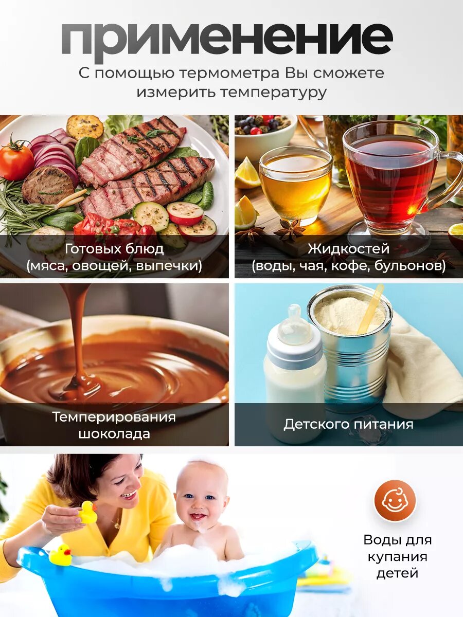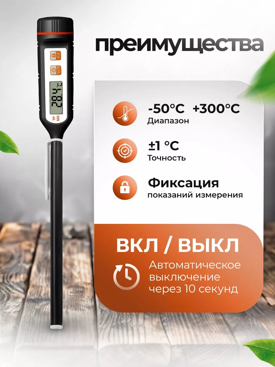 Термометр кулинарный САМОВАРЫЧ ТР-503, электронный, для готовки, пластик, чёрный интересное: