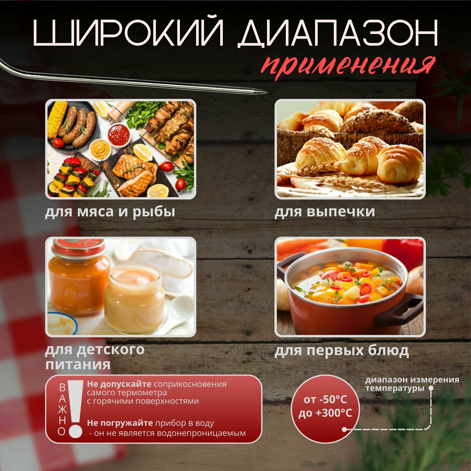 Кулинарный термометр электронный со щупом из нержавеющей стали, термометр для еды, мяса, вина, провод 1 метр / таймер кухонный