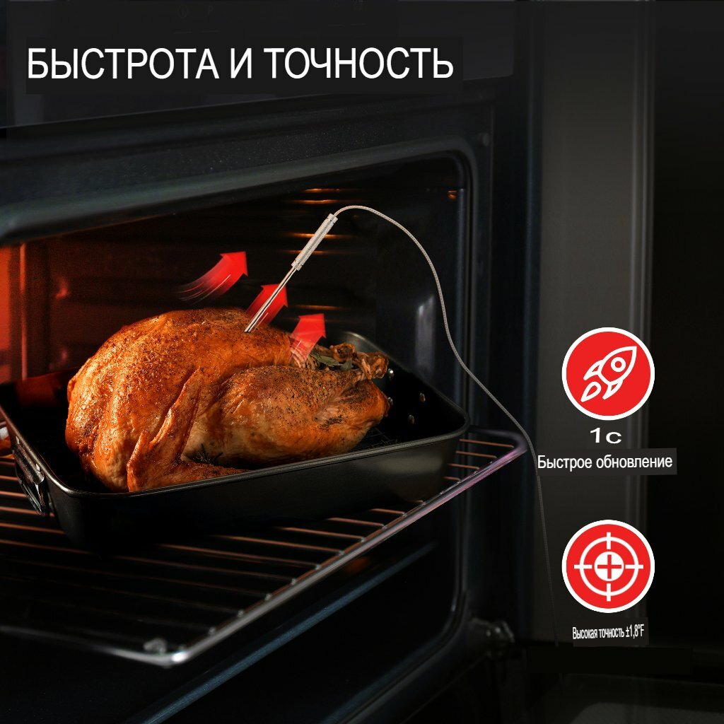 Кулинарный термометр электронный со щупом из нержавеющей стали, термометр для еды, мяса, вина, провод 1 метр / таймер кухонный