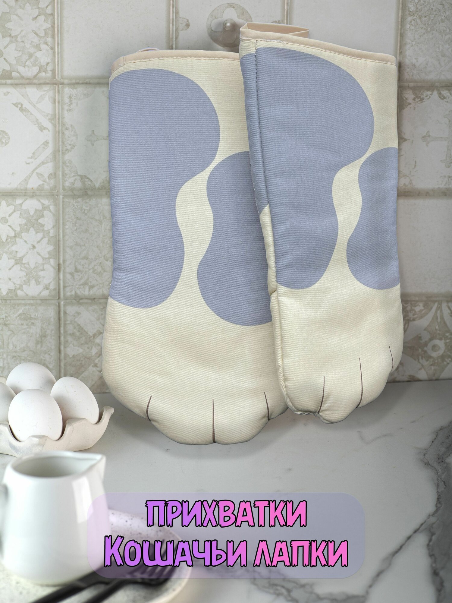 Прихватки-рукавички "Кошачьи лапки" бежевые 2 шт. интересное: