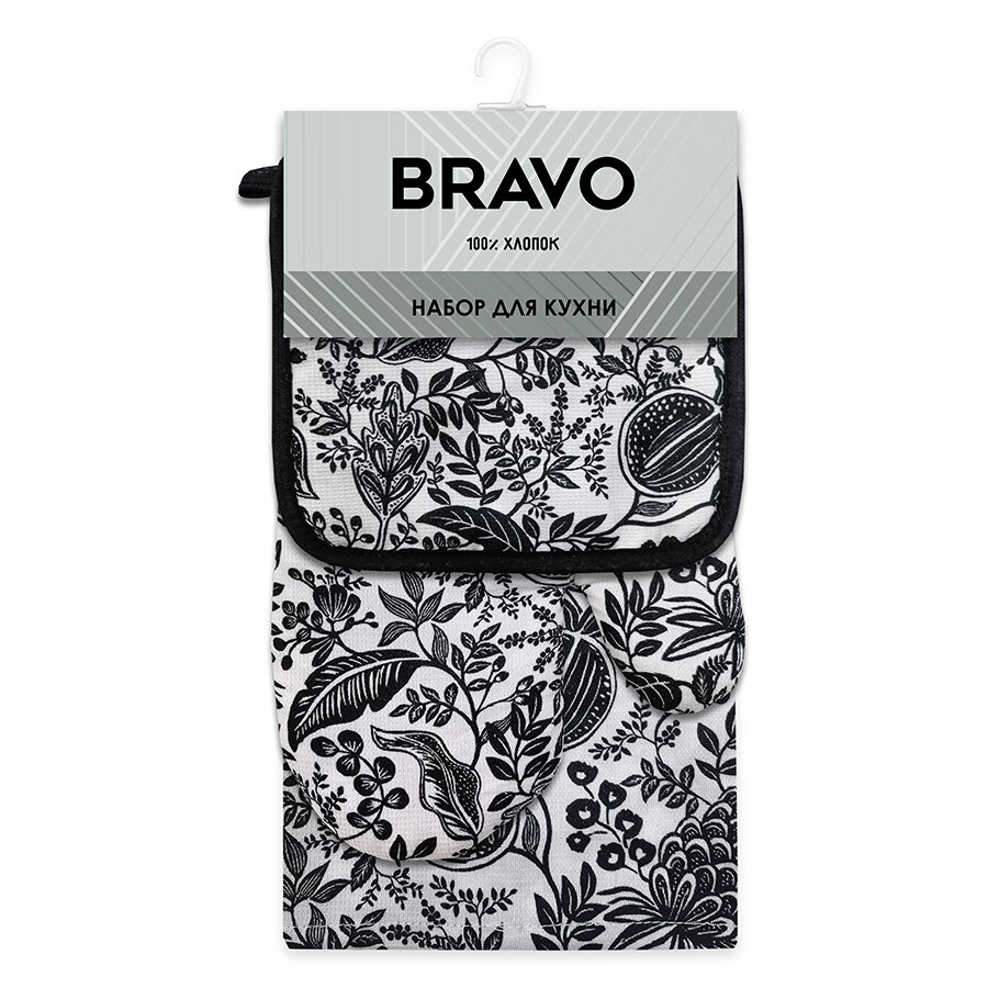 Набор кухонный BRAVO Цветы/ подарочный набор /прихватка 17х17 см, прихватка-рукавица 18х26 см, полотенце 35х60 см/