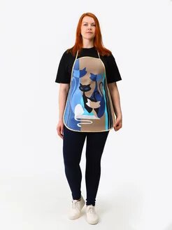 Фартук кухонный для готовки и на стену. Коты синие. Рис. 1.