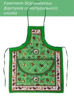 Фартук кухонный для готовки и на стену. Набор 3 шт. Клетка зеленая.
