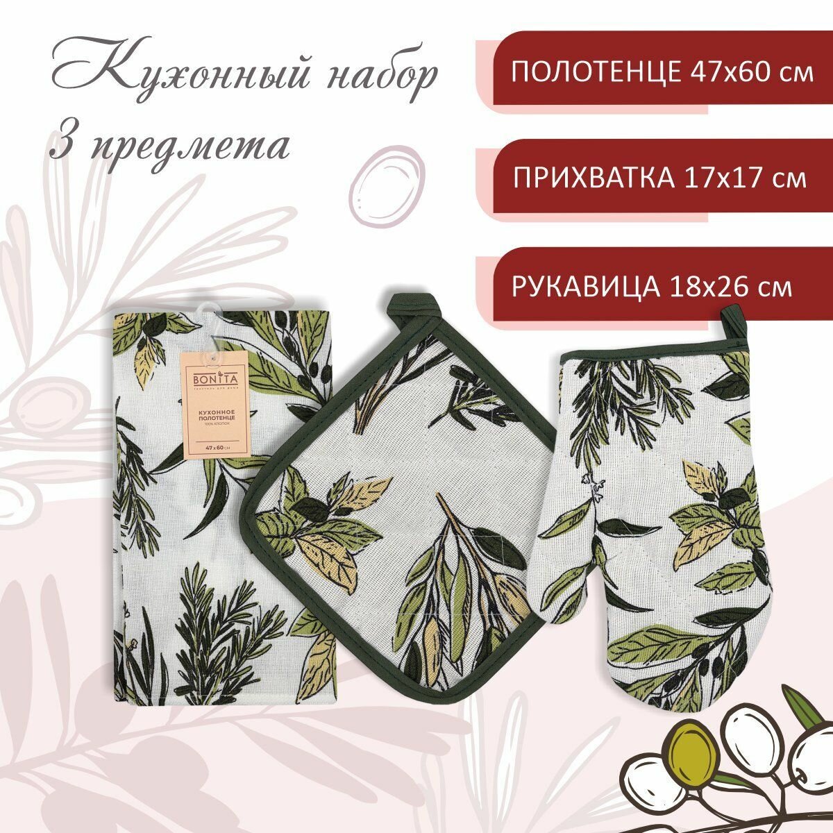Набор кухонный рогожка Олива / подарочный набор /прихватка 17х17 см, прихватка-рукавица 18х26 см, полотенце 47х60 см/подарок Новый год интересное: