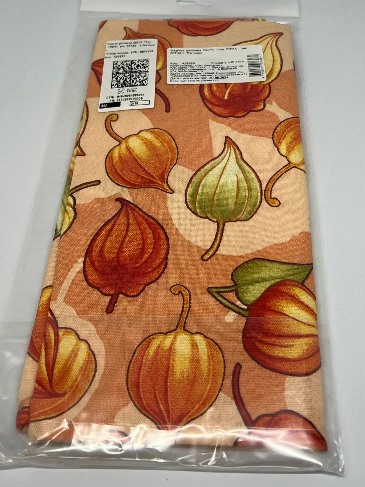 СохранитьФартук Vse Doma "Физалис", рогожка, 60 см x 70 см, 100% хлопок, плотность 190 г/м2 интересное: