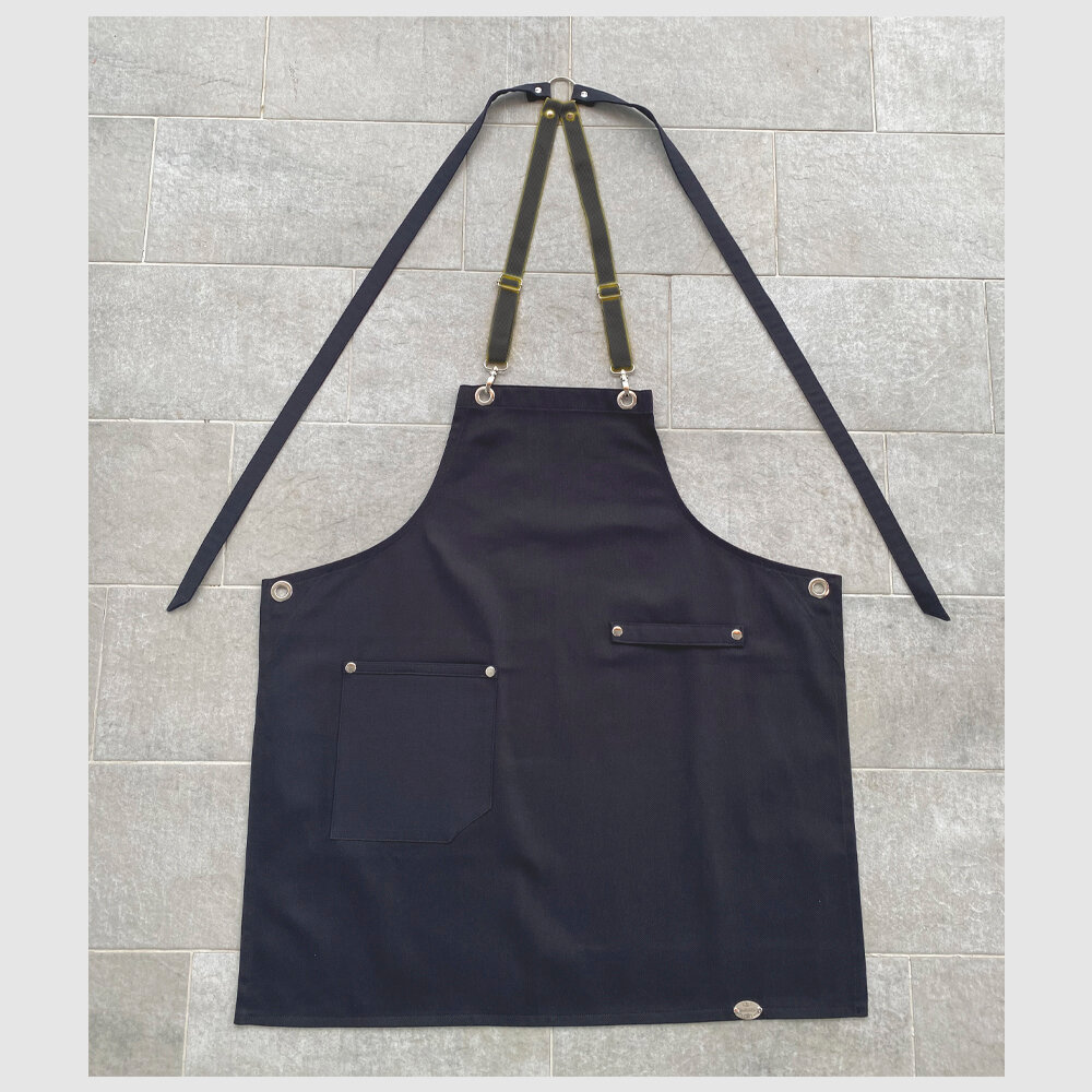 Фартук рабочий универсальный с водоотталкивающей пропиткой, цвет Чёрный с Коричневыми бретельками.