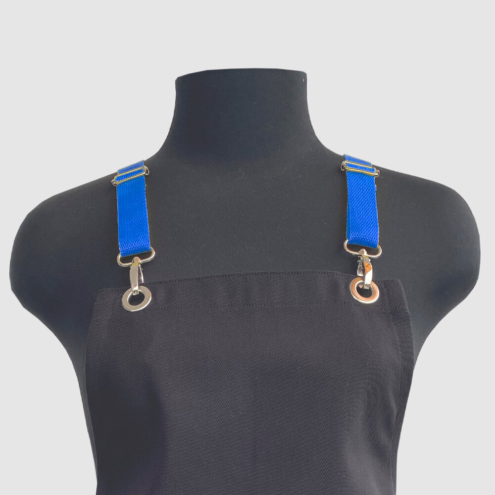 Купить Фартук рабочий универсальный с водоотталкивающей пропиткой, цвет Чёрный с Синими бретельками.