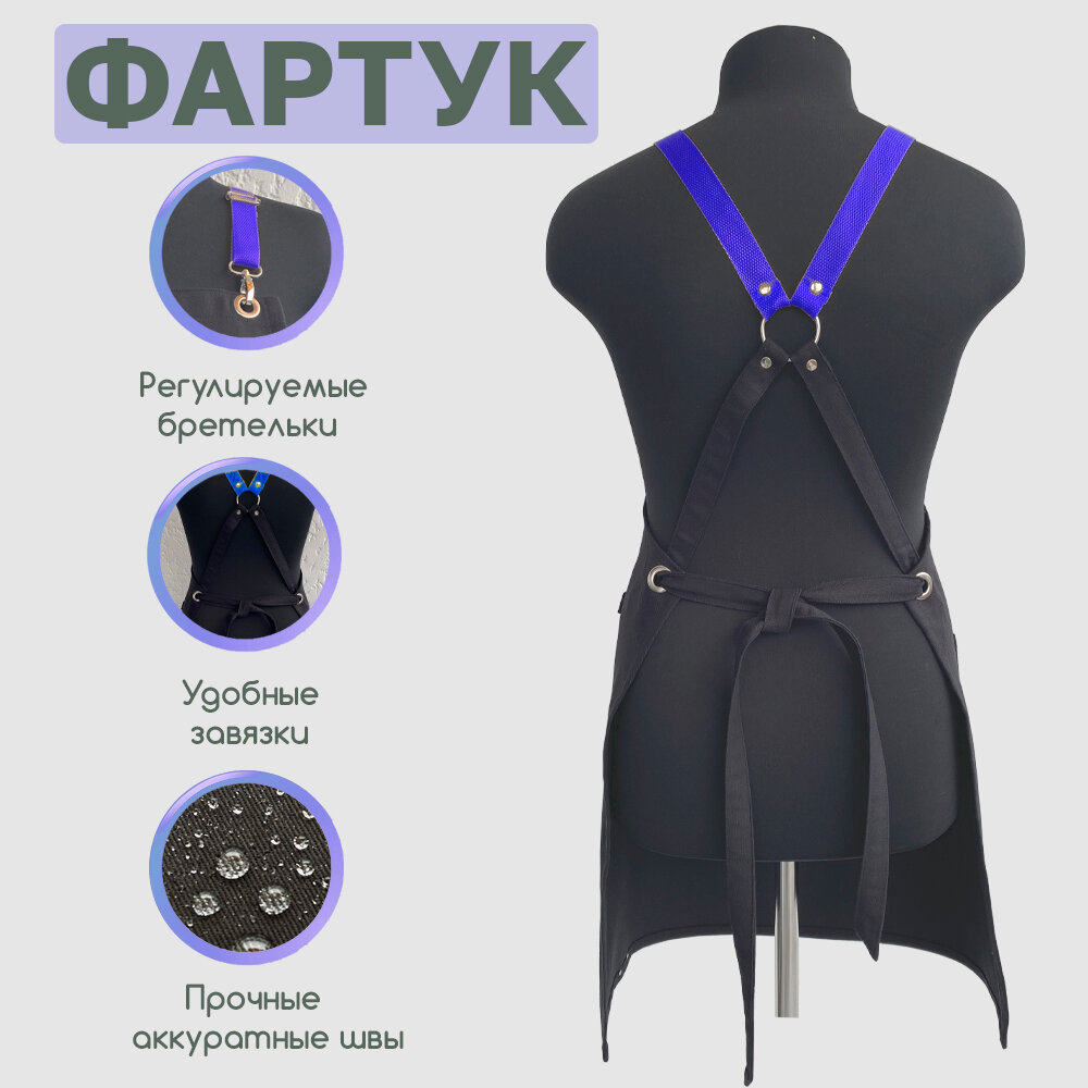 СохранитьФартук рабочий универсальный с водоотталкивающей пропиткой, цвет Чёрный с Синими бретельками. интересное: