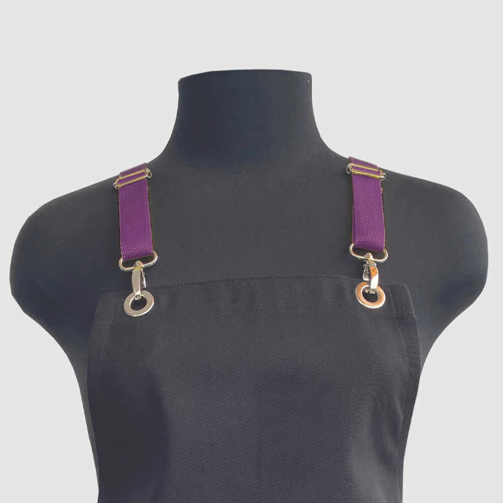Купить Фартук рабочий универсальный с водоотталкивающей пропиткой, цвет Чёрный с Сиреневыми бретельками.