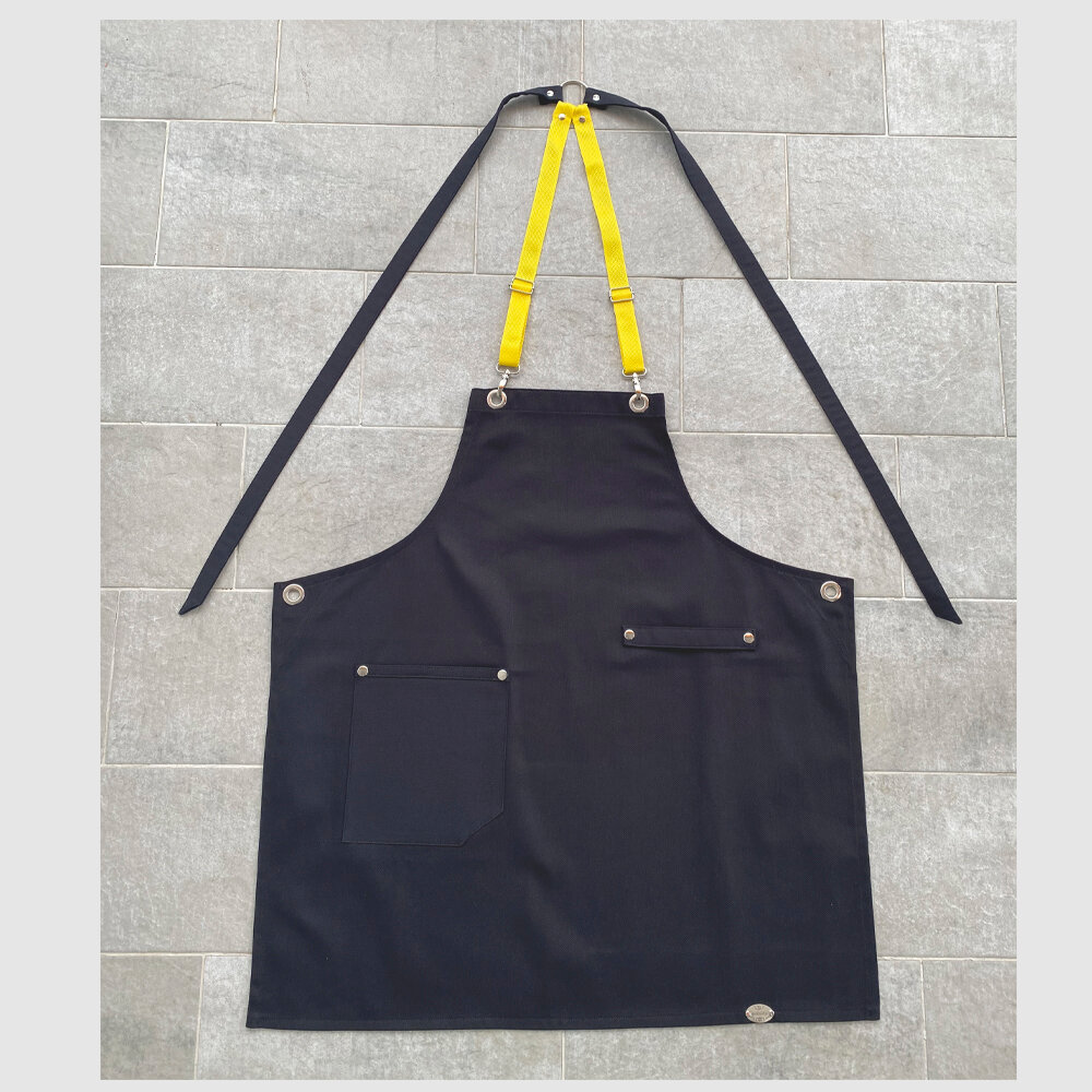 СохранитьФартук рабочий универсальный с водоотталкивающей пропиткой, цвет Чёрный с Жёлтыми бретельками. интересное: