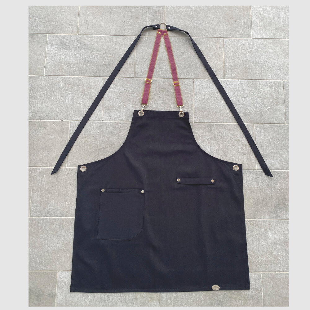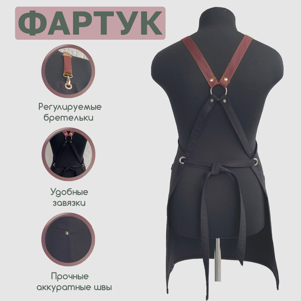 СохранитьФартук рабочий универсальный с водоотталкивающей пропиткой, цвет Чёрный с Бордовыми бретельками. интересное:
