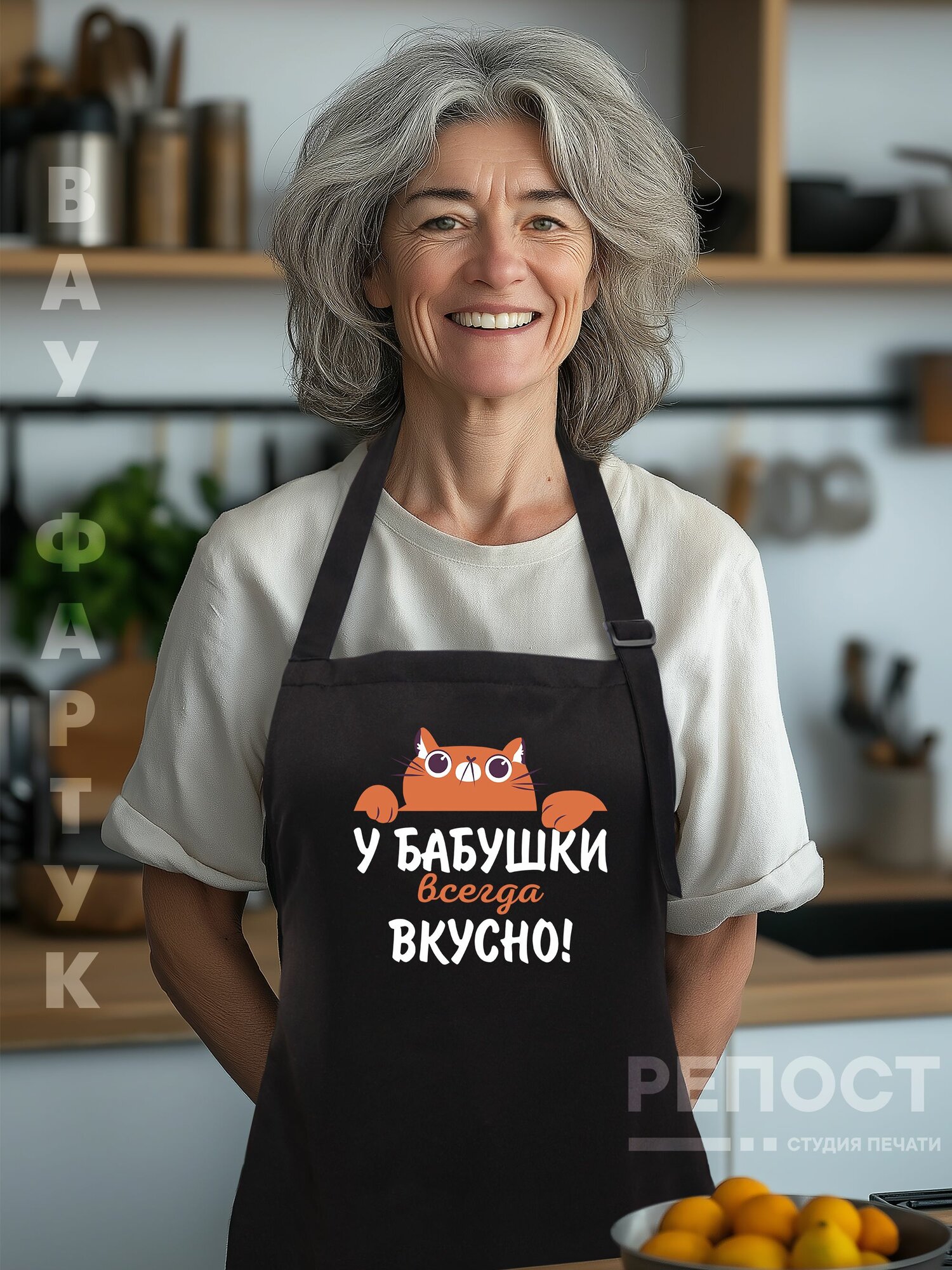 Фартук кухонный женский поварской для мамы и бабушки в подарок интересное: