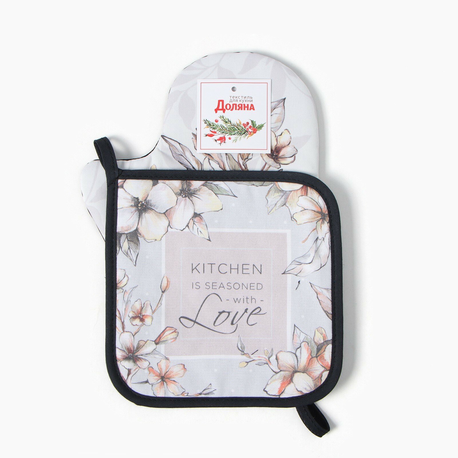 Кухонный набор Love beautiful: варежка-прихватка 20×28 см, прихватка 19×19 см, 100% хлопок