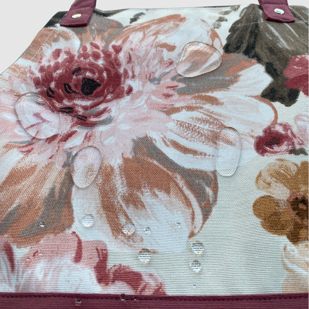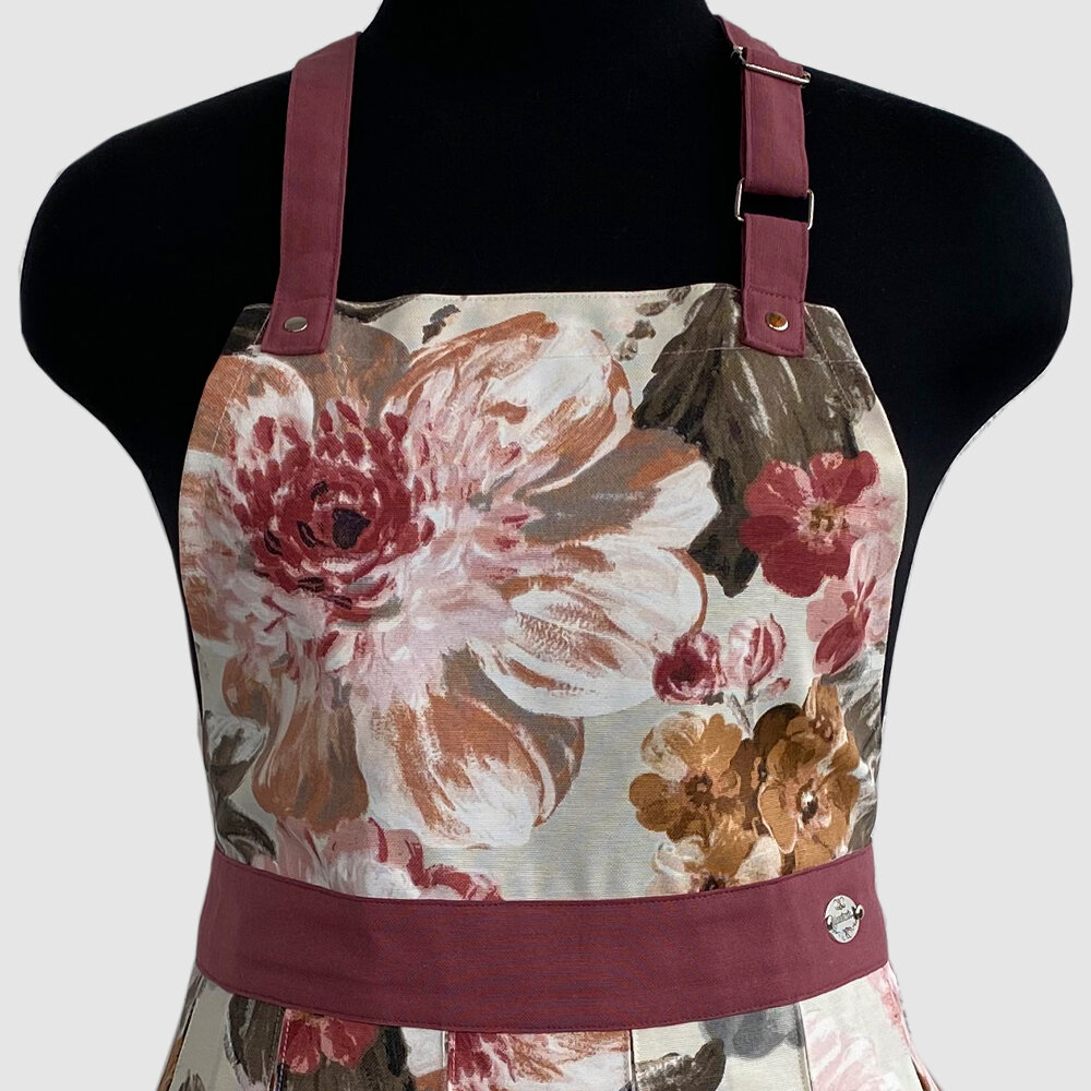 Фартук женский с водоотталкивающей пропиткой, принт "Пионы" с кораллово-розовыми бретельками и поясом.