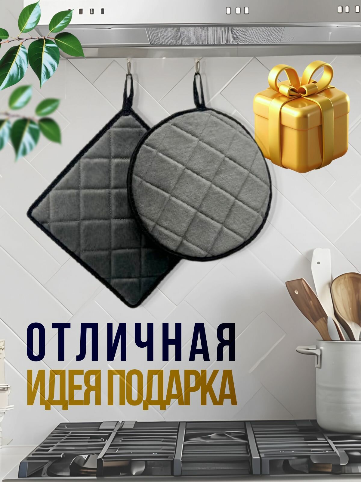 Набор универсальных серых прихваток на кухню интересное: