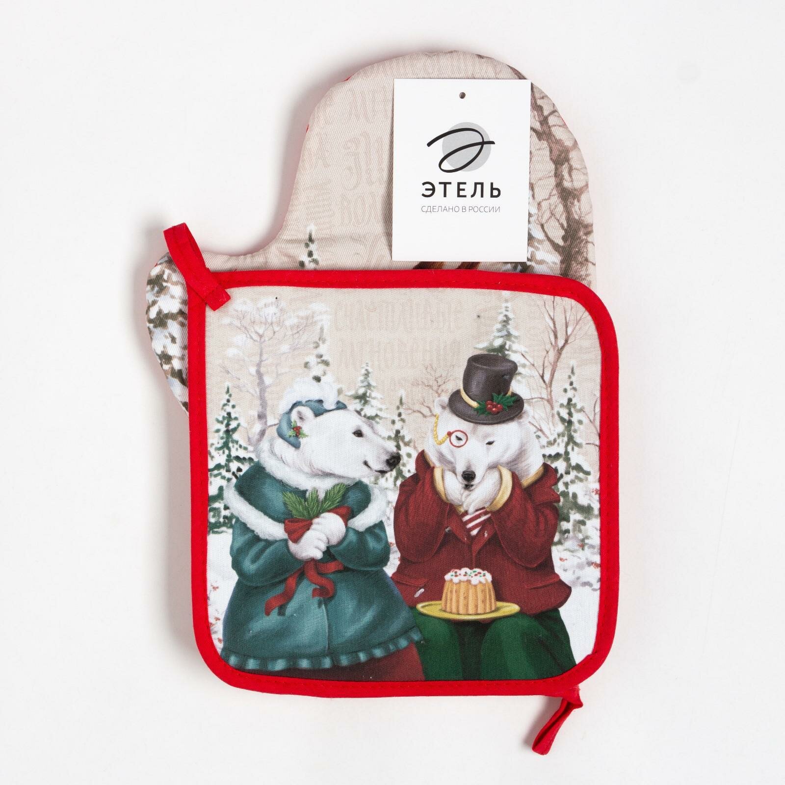 Набор кухонный Этель Вears варежка 15х28 см, прихватка 19х19 см, 100%хл