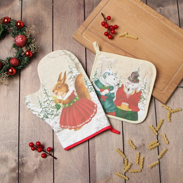 Набор Кухонный "Forest animals", Варежка-прихватка новогодняя 20х28см, прихватка 19х19см, 100% хл