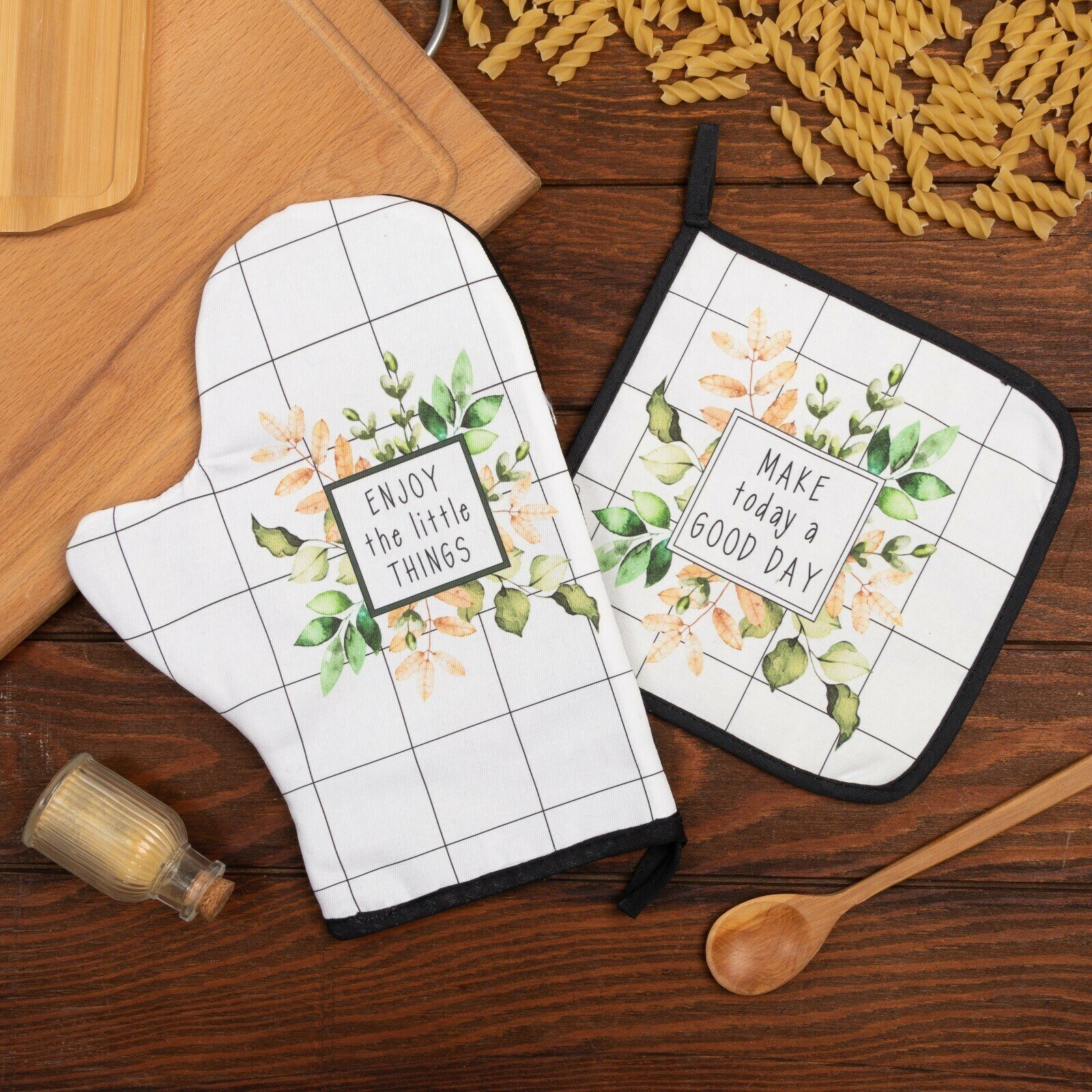 Купить Набор Кухонный «Flora», варежка-прихватка 20х28см, прихватка 19х19см, 100% хл
