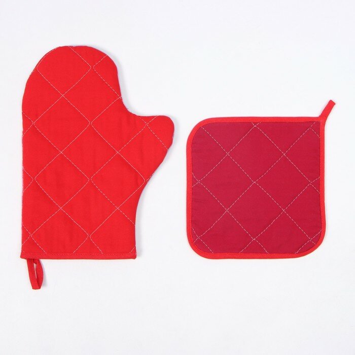 Набор кухонный Этель Red Square варежка 15х28см, прихватка 19х19см,100%хл
