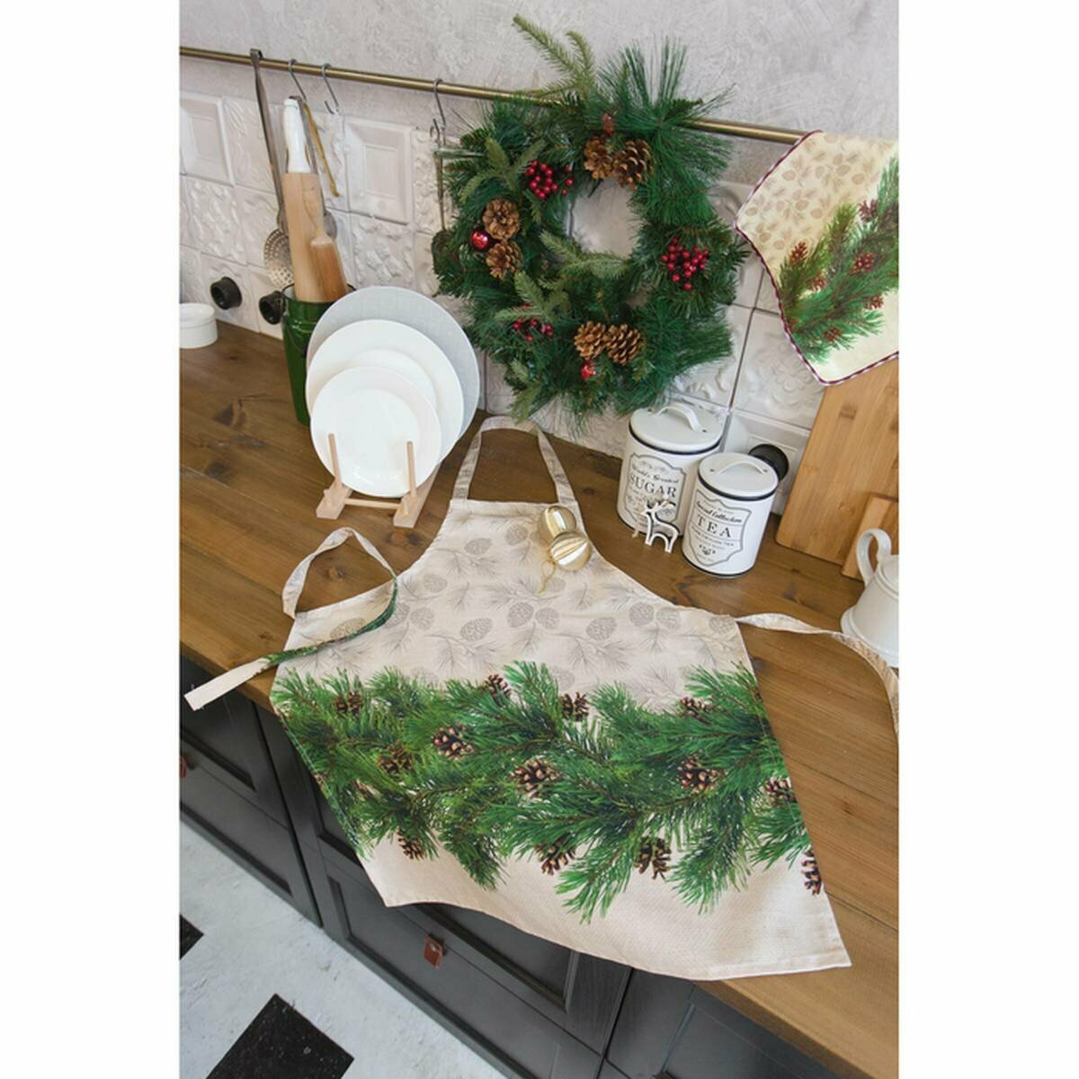 Купить Фартук новогодний Еловые ветви 70х61 см, 100% хлопок, саржа 190 гр/м2
