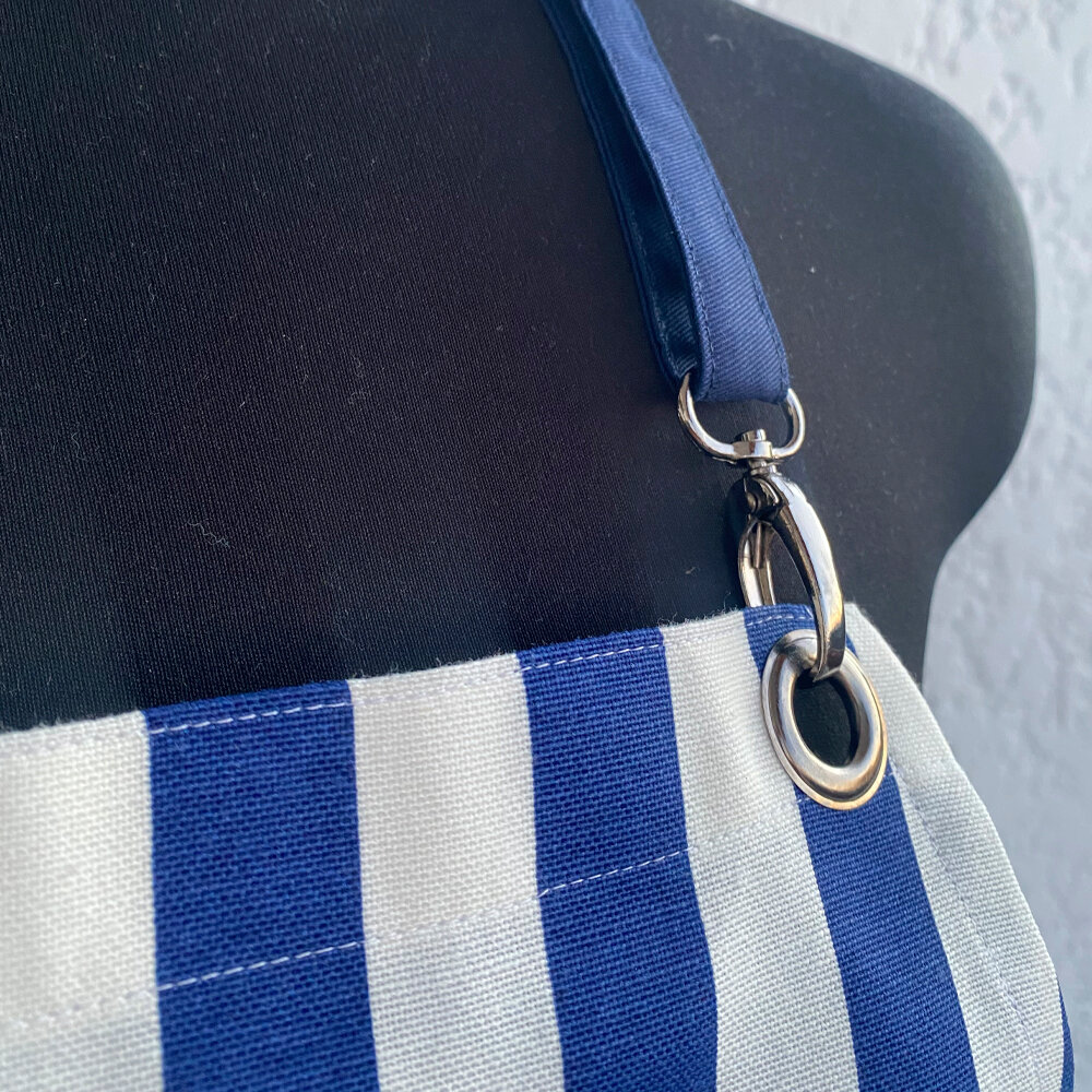 Фартук кухонный, поварской, с водоотталкивающей пропиткой, принт "Жасмин" с бретелькой синего цвета.
