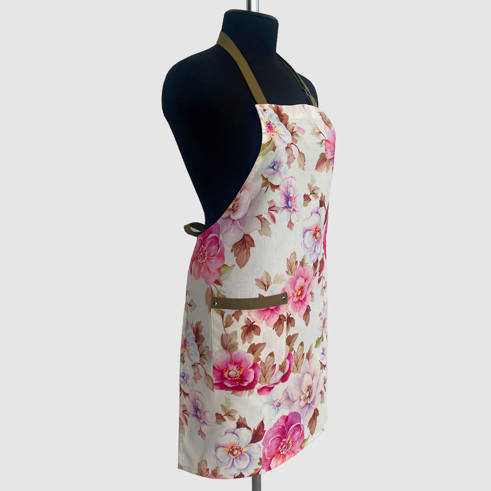 СохранитьФартук кухонный, поварской, с водоотталкивающей пропиткой, принт "Роза Касабланка" с бретельками и поясом цвета хаки. интересное: