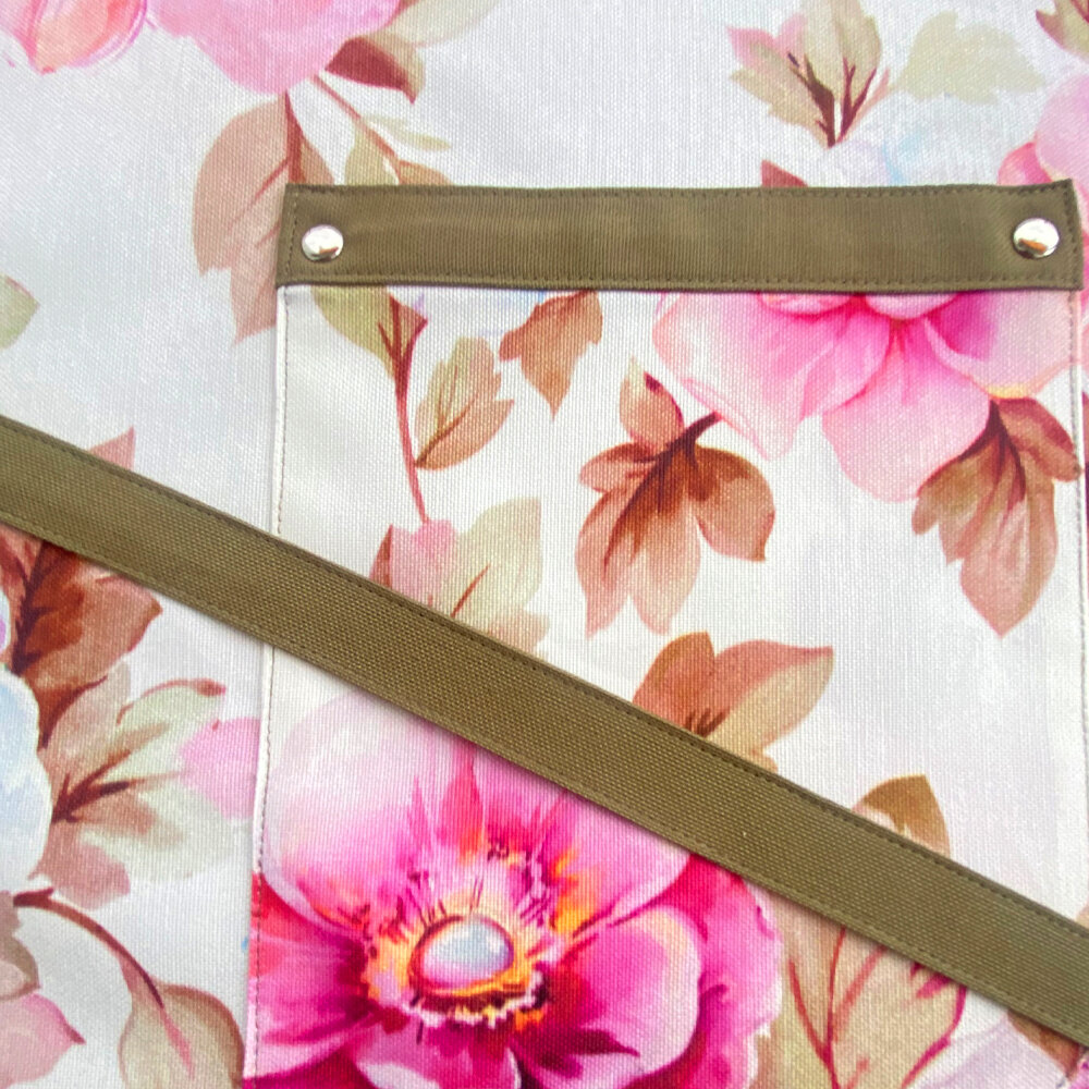 Купить Фартук кухонный, поварской, с водоотталкивающей пропиткой, принт "Роза Касабланка" с бретельками и поясом цвета хаки.