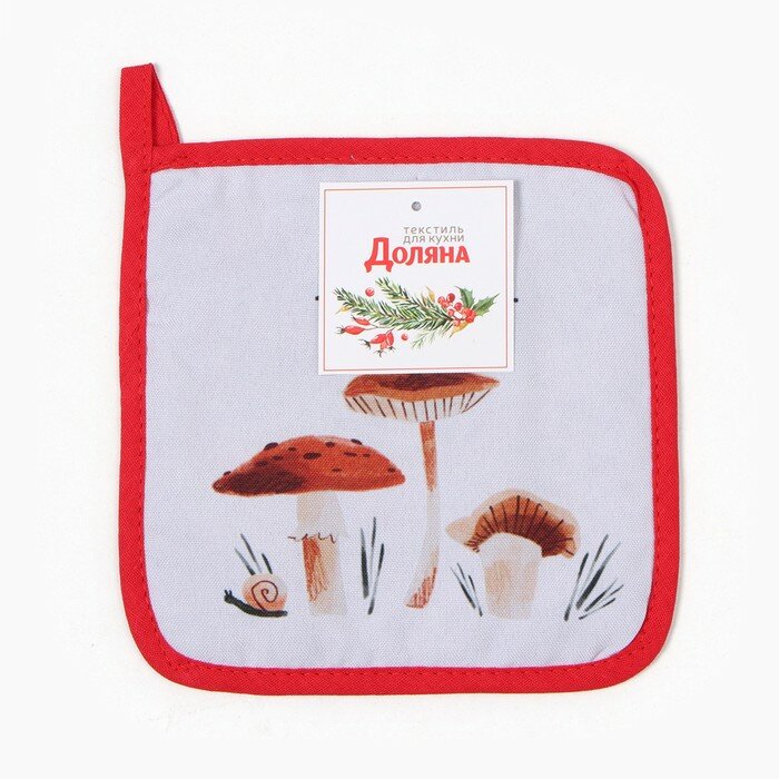 Купить Прихватка Доляна "Грибы" 17х17 см, 35% хл, 65% пэ, ватин 250 г/м2