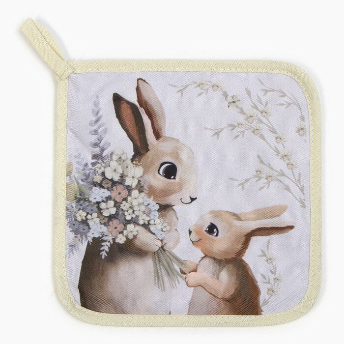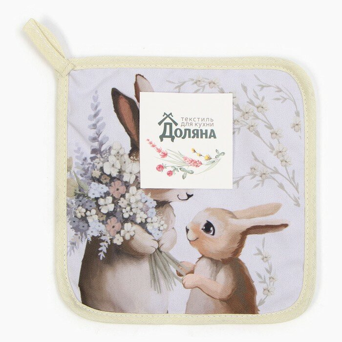 Купить Прихватка Доляна "Зайчата" 17х17 см, 35% хл, 65% пэ, ватин 250 г/м2