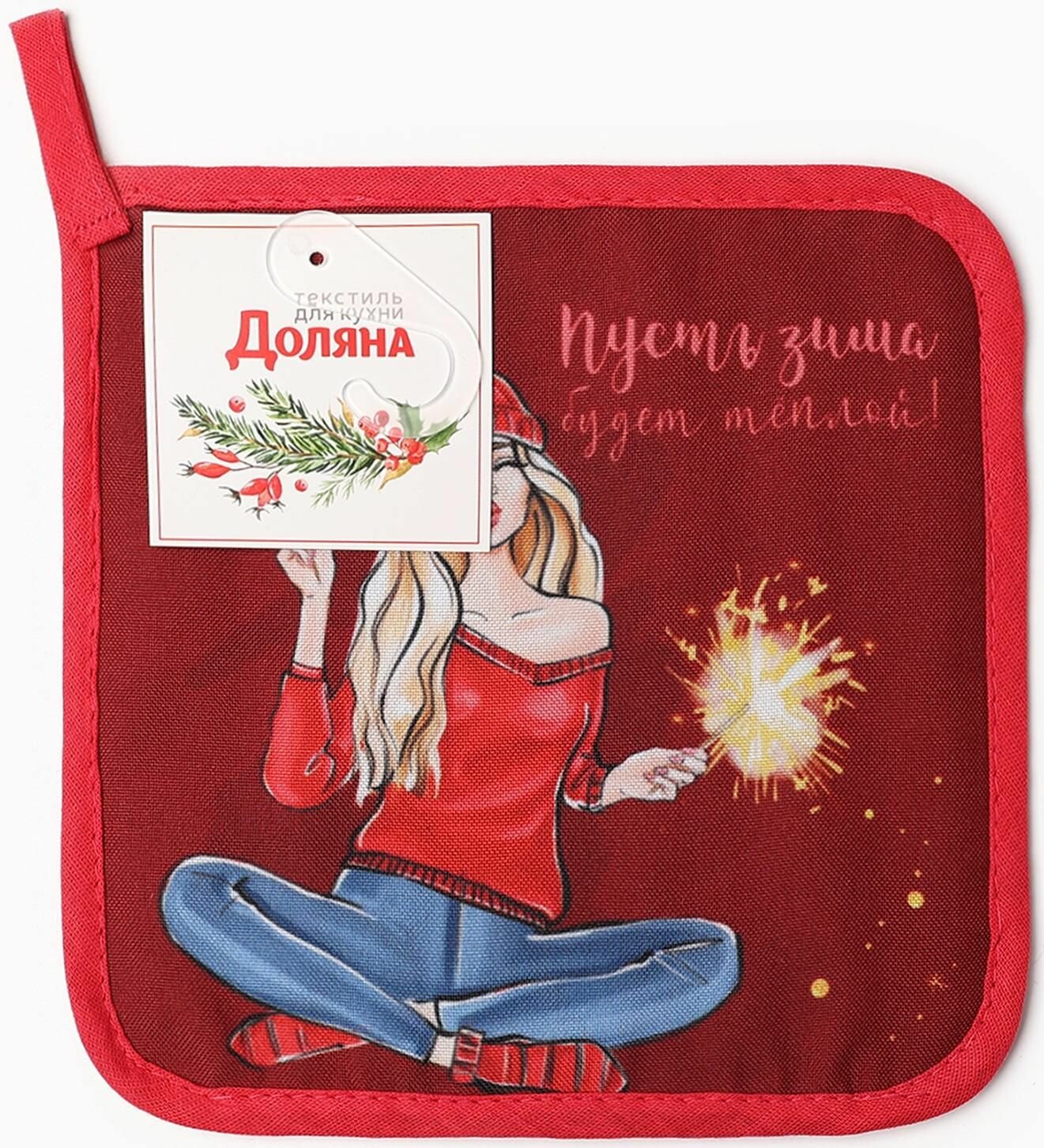 Прихватка Доляна - Holly jolly, 17х17 см, полиэстер, ватин 250г/м2, 1 шт.
