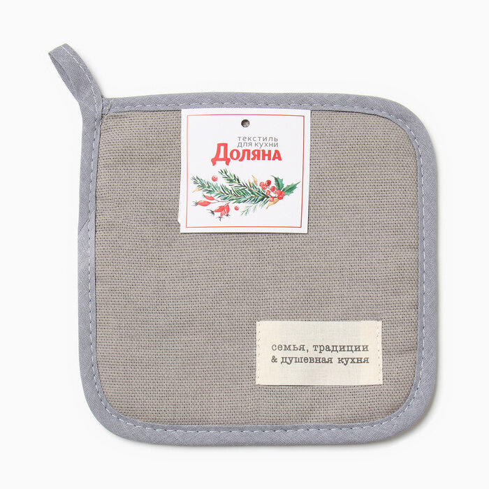 Купить Прихватка Доляна "Душевная кухня" цв. серый 17х17 рогожка,100% х/л