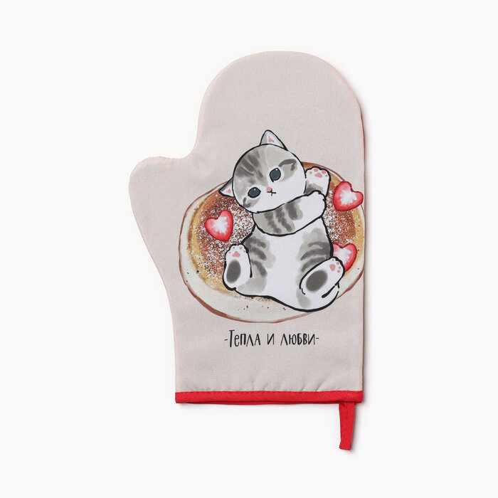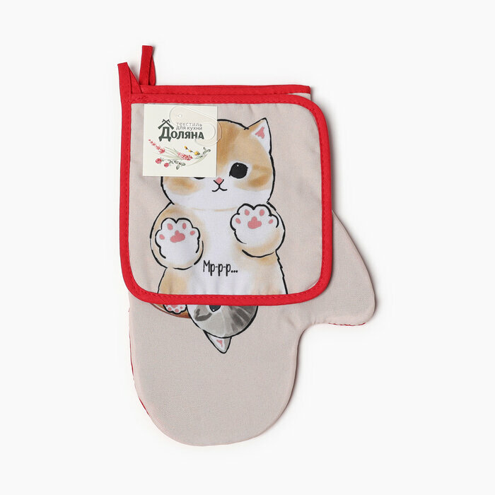Купить Набор кух. Доляна "Котик": варежка 20х28 см, прихватка 17х17 см, 35% хл, 65% пэ