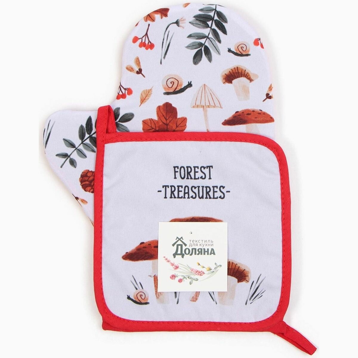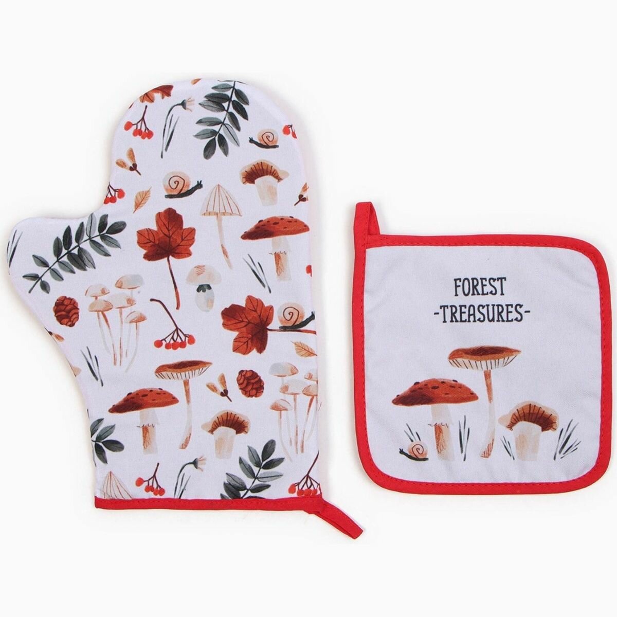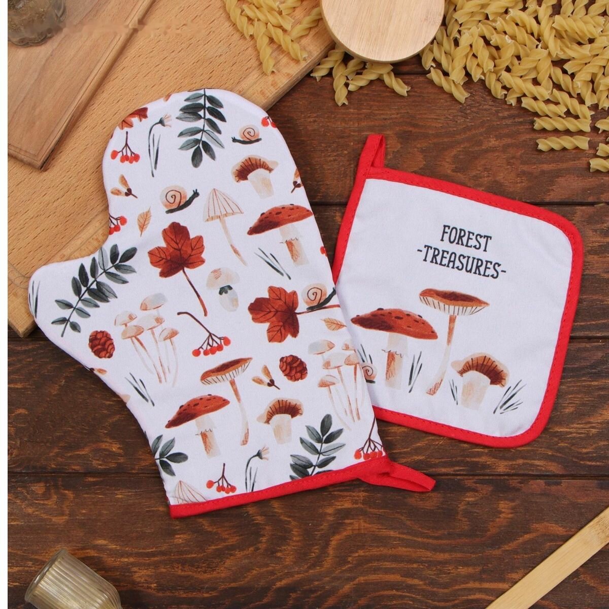 Купить Набор кух. Доляна "Грибы": варежка 20х28 см, прихватка 17х17 см, 35% хл, 65% пэ